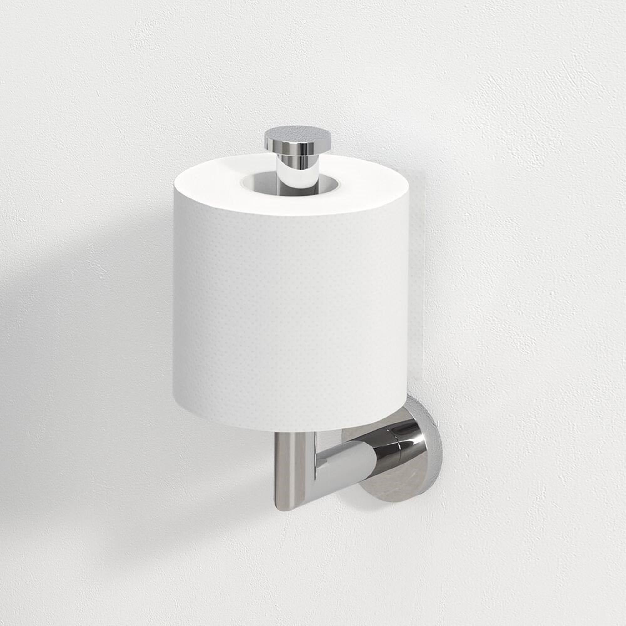 - Porte-rouleau de réserve élégant en chrome moderne, adapté à presque tous les styles de toilettes et de salles de bains.