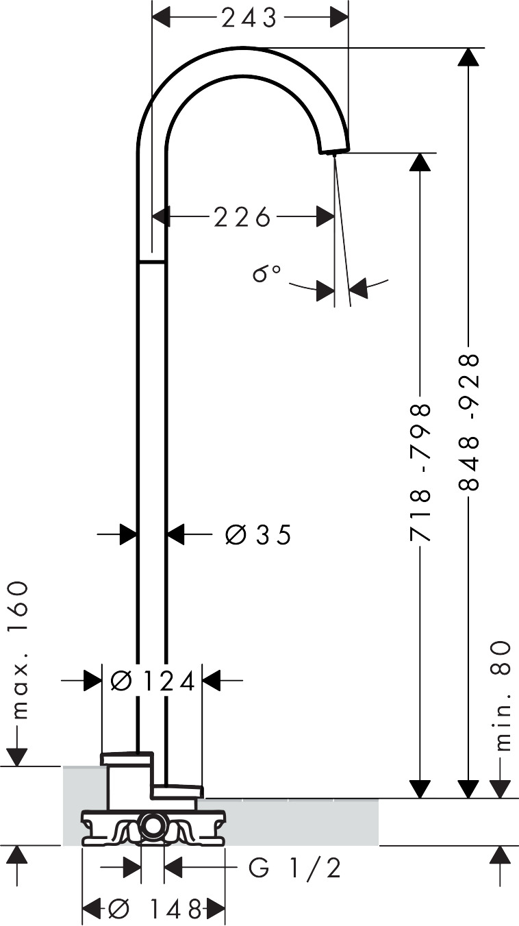 Axor Uno 3 Bec déversoir pour robinet encastrable sur pied courbé chrome