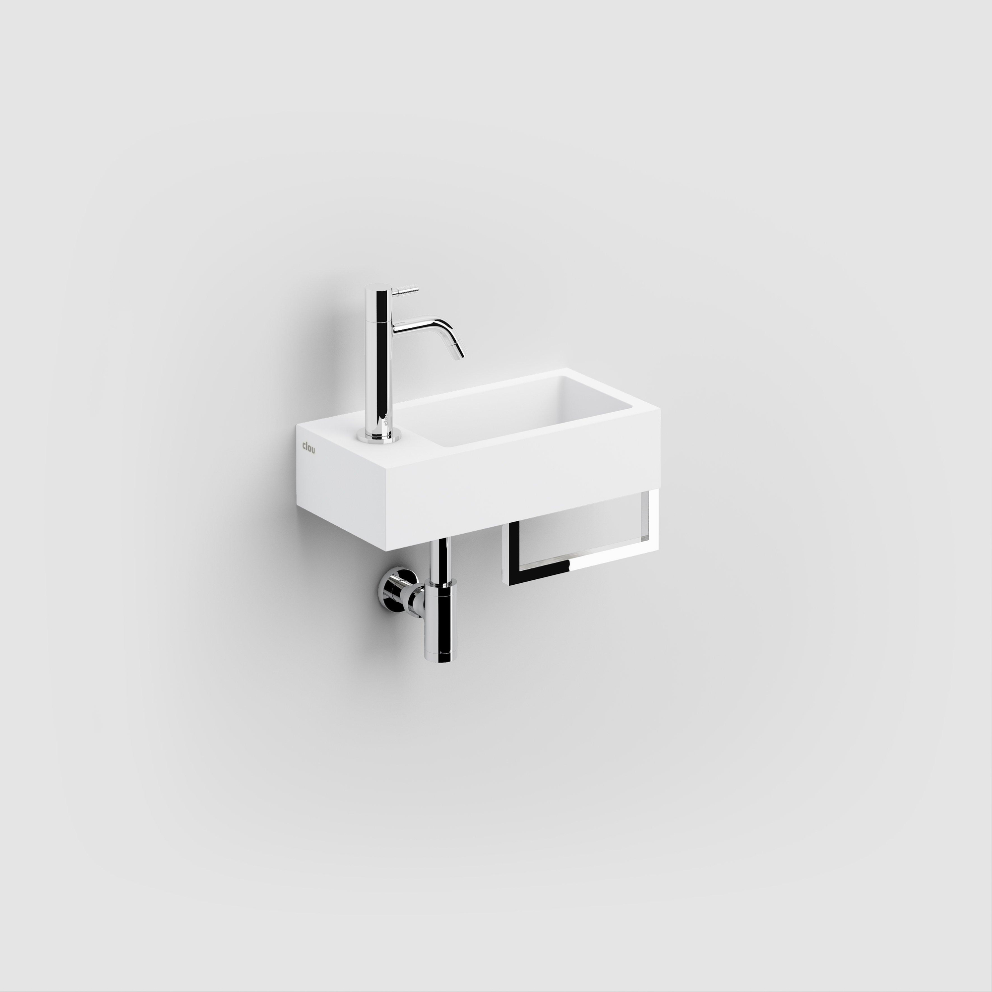 - Porte-serviettes chromé intégré pour une petite serviette directement sous le lave-mains