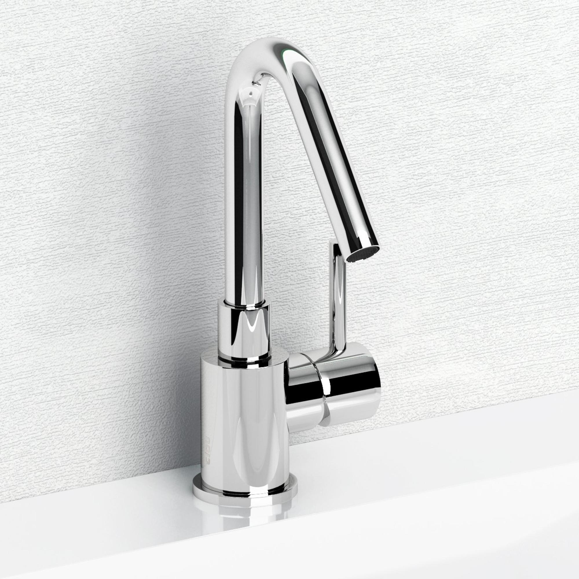 - Mitigeur haut en forme de C, idéal pour plus d’espace de mouvement au-dessus du lavabo
