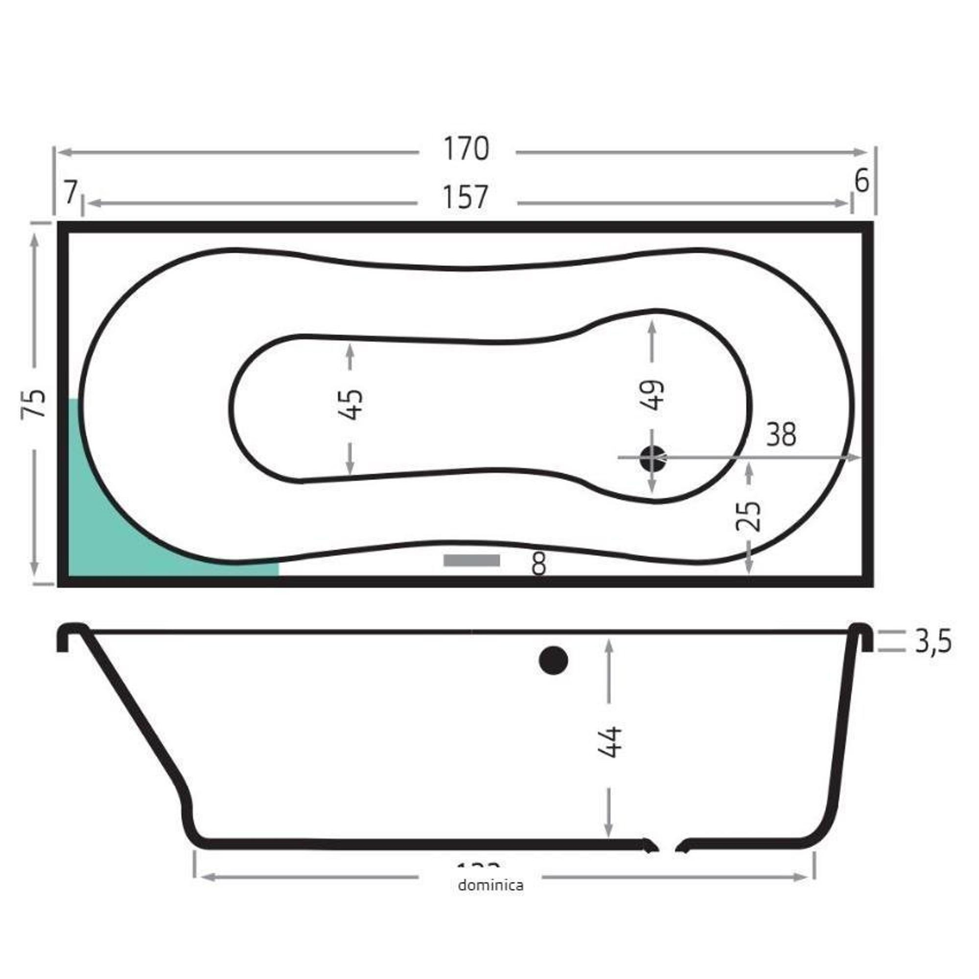 Xenz Dominica Douchebad - 170x75x47 - afvoer uiteinde - acryl - wit
