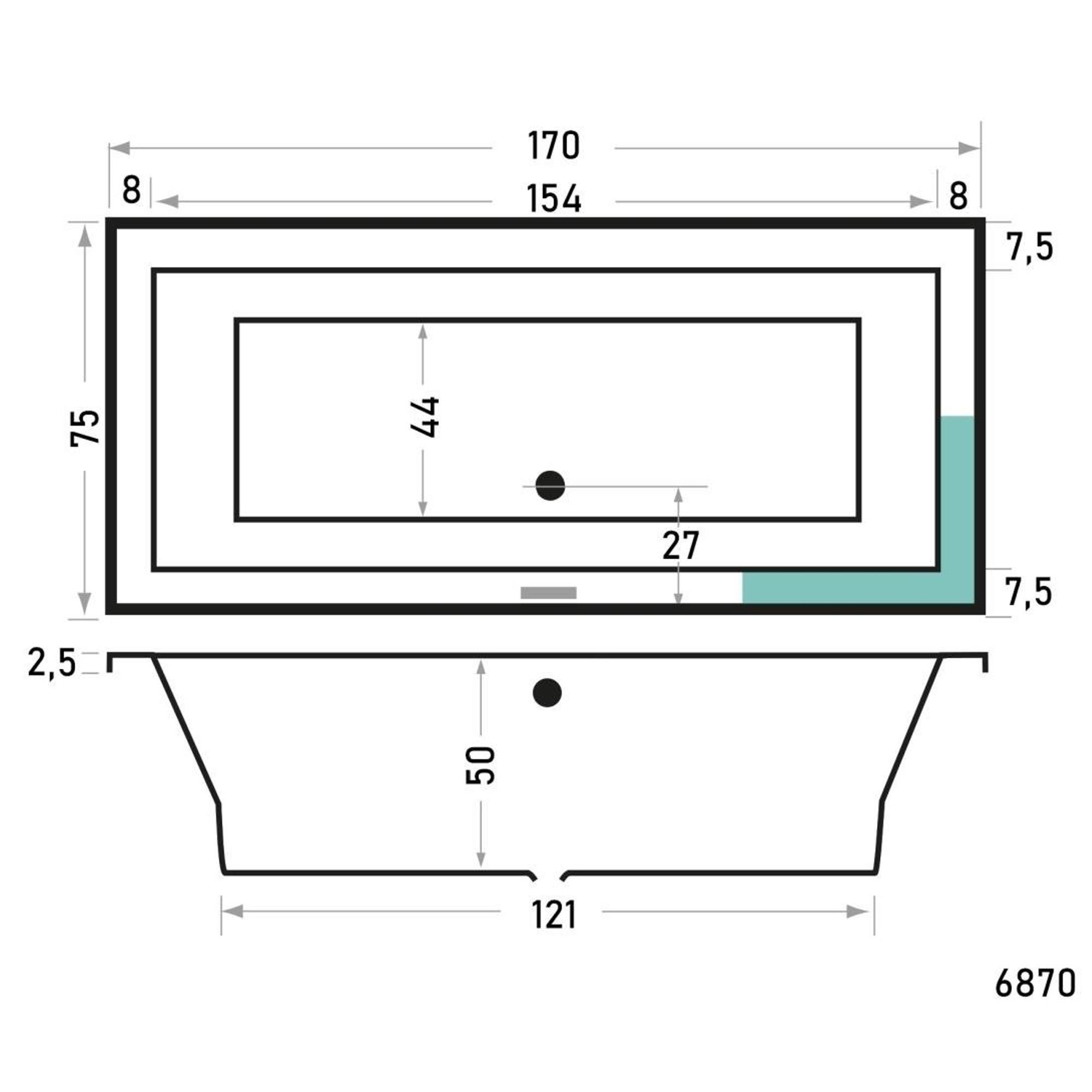 - Dimensions 170x75x53 cm : idéale pour les salles de bains de taille moyenne et compactes