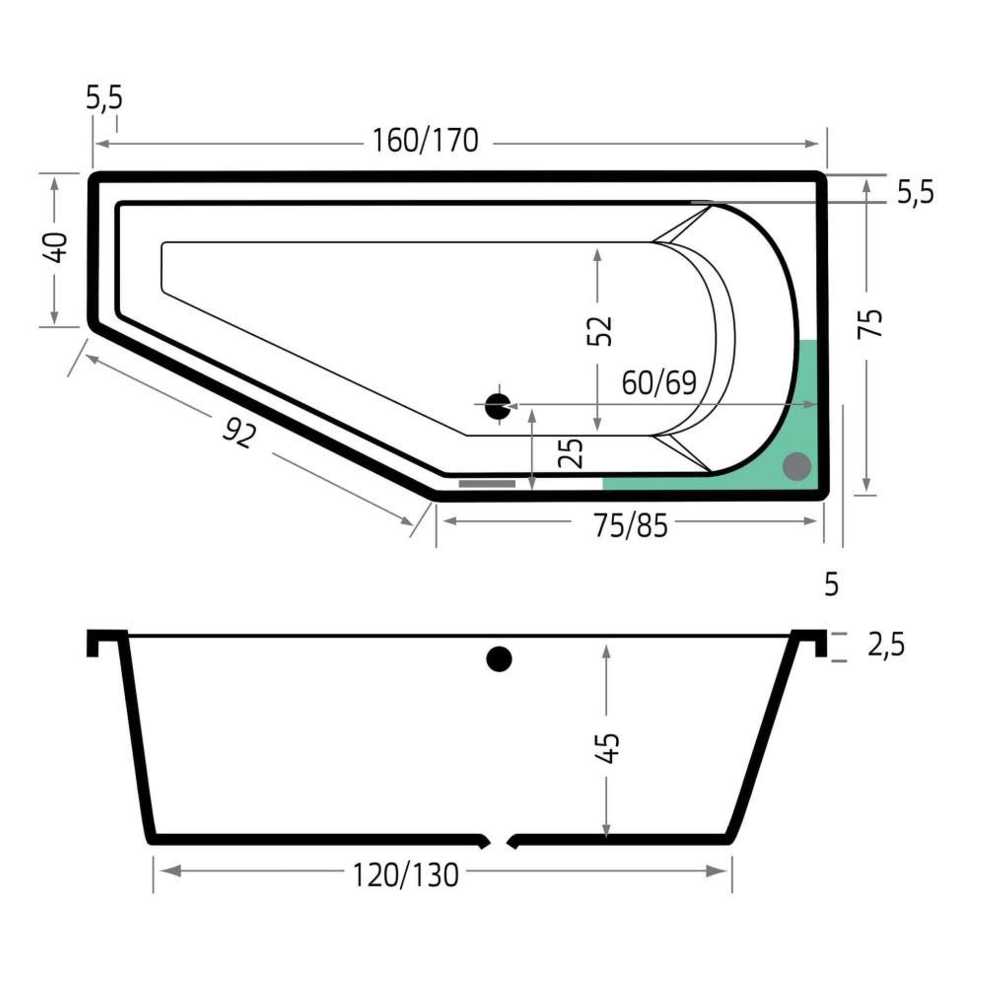 - Convient comme baignoire encastrable, afin que vous puissiez la finir joliment avec du carrelage ou un habillage sur mesure.