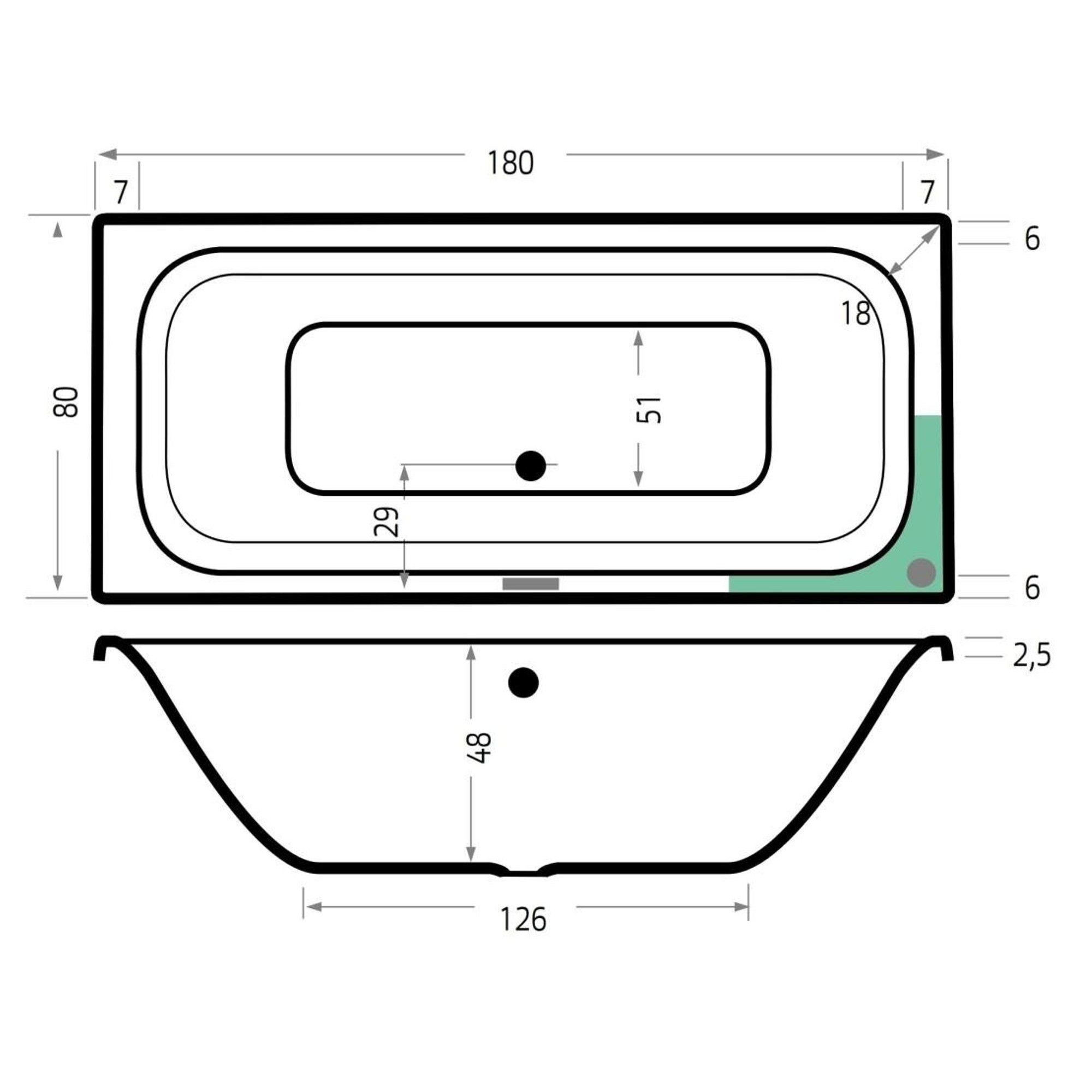 - Baignoire duo spacieuse de 180x80x51 cm, idéale pour se baigner à deux ou seul avec un confort supplémentaire