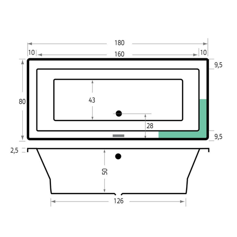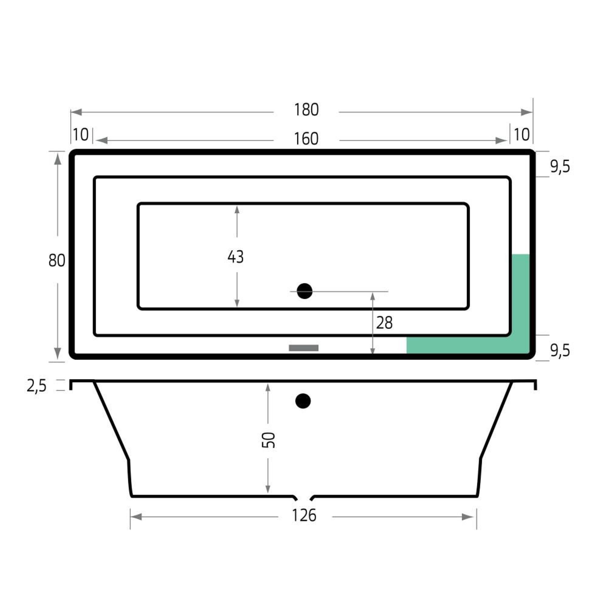 - Vaste baignoire duo de 180x80x53 cm, idéale pour deux personnes ou pour un confort supplémentaire en solo.