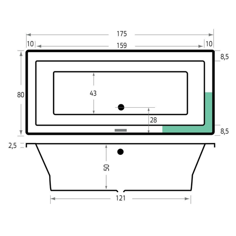 - Grande baignoire duo de 175x80x53 cm, idéale pour une ou deux personnes.