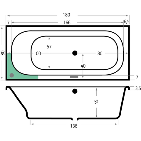 - Baignoire spacieuse de 180 x 80 cm pour un confort optimal en position assise et allongée.