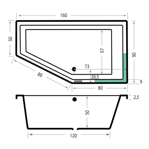 Grâce à sa forme pentagonale, vous utilisez de manière optimale l'espace disponible, tout en profitant à l'intérieur d'une zone de couchage étonnamment spacieuse. Le côté de couchage situé à droite est conçu de manière à soutenir votre corps de façon détendue, idéal pour un long moment de bain après une longue journée. La bonde au milieu vous permet de vous asseoir ou de vous adosser confortablement des deux côtés, sans tomber directement sur l'évacuation. Surtout dans les salles de bains où chaque centimètre compte, cette solution d'angle astucieuse offre un bel équilibre entre confort et compacité. Vous profitez ainsi de la sensation luxueuse d'une vraie baignoire de détente, sans que votre salle de bains ne paraisse surchargée ou désordonnée.