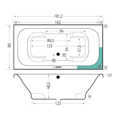 Xenz Tanga Duobad - 180x90x51 - afvoer Midden - acryl - wit