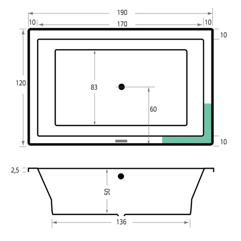 - Grande baignoire duo de 190x120 cm, idéale pour se baigner à deux ou pour un confort maximal en solo.