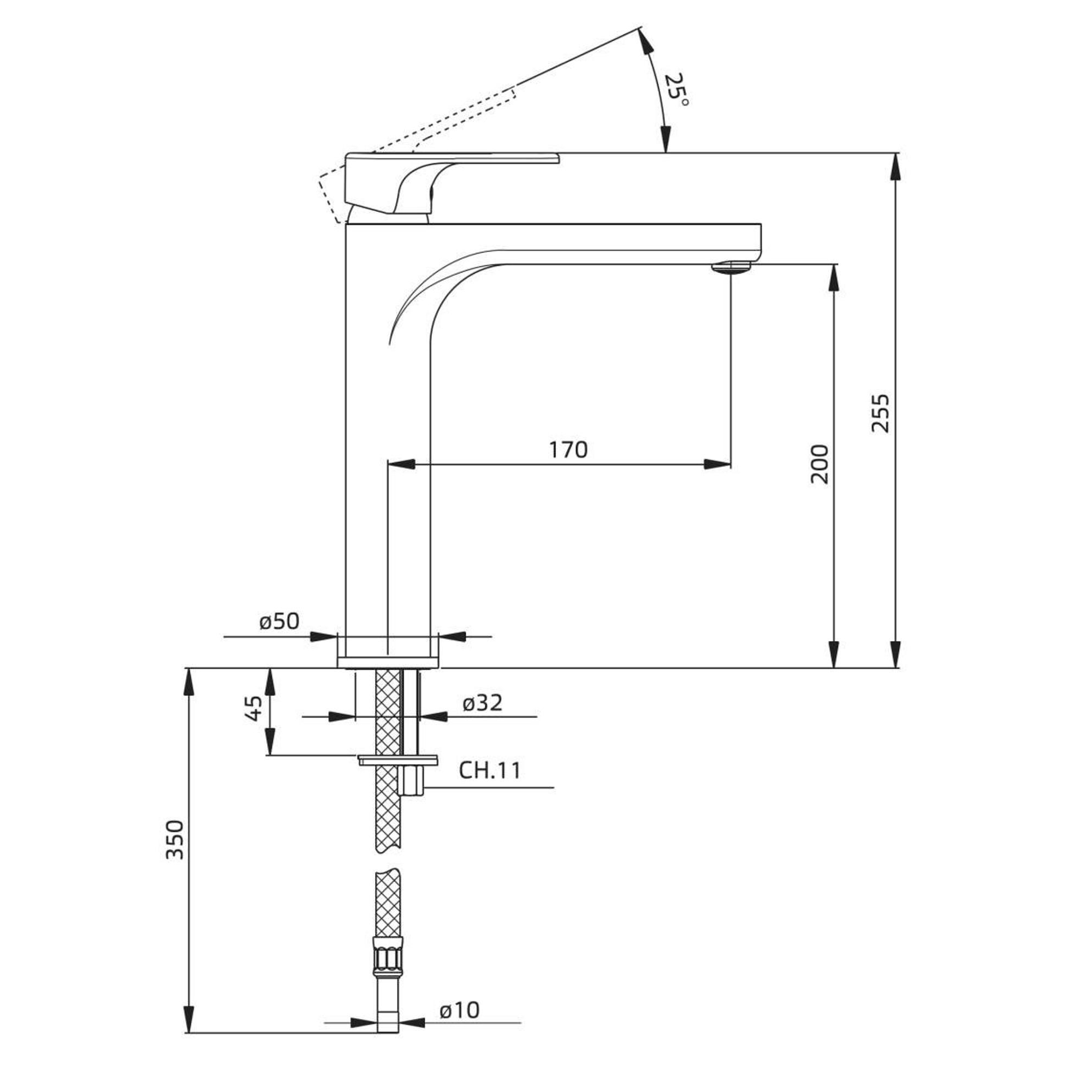 La hauteur d'environ 22,5 cm rend ce robinet de lavabo particulièrement adapté aux vasques à poser et aux bols de lavabo plus hauts. Vous bénéficiez d'un espace supplémentaire entre le bec et la cuve, ce qui limite les éclaboussures et permet à vos mains, votre visage ou vos accessoires de se placer confortablement sous le jet. Le bec avance d'environ 10,5 cm, ce qui assure une position de l'eau agréable au centre du lavabo. Vous évitez ainsi que l'eau ne coule le long du bord et votre plan de toilette reste beau plus longtemps. Le design surélevé apporte en outre une allure raffinée, presque architecturale : un élément discret qui dégage de la sérénité au lieu de dominer l'espace.Chrome brillant épuré pour un look intemporel