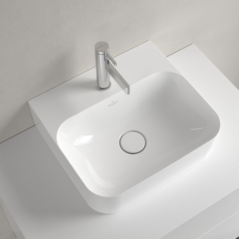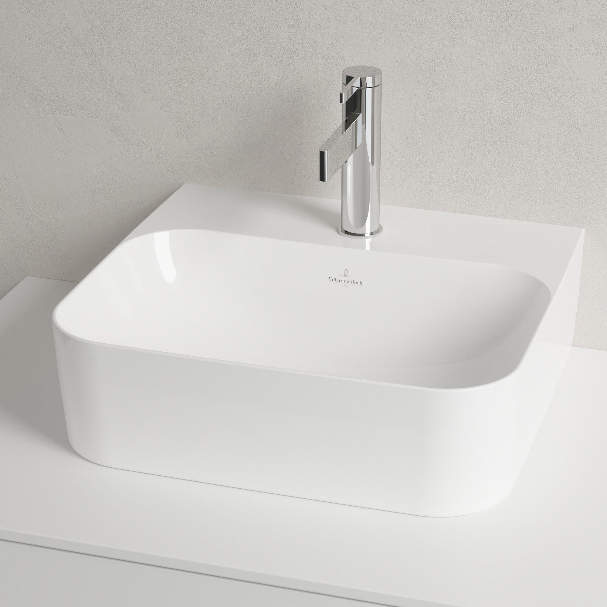 Villeroy & Boch Finion lave-mains bord poli en dessous 1 trou de robinet 43x39cm - ceramic+ sans trop-plein blanc