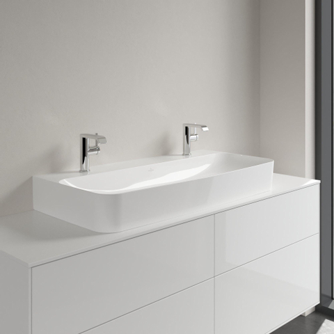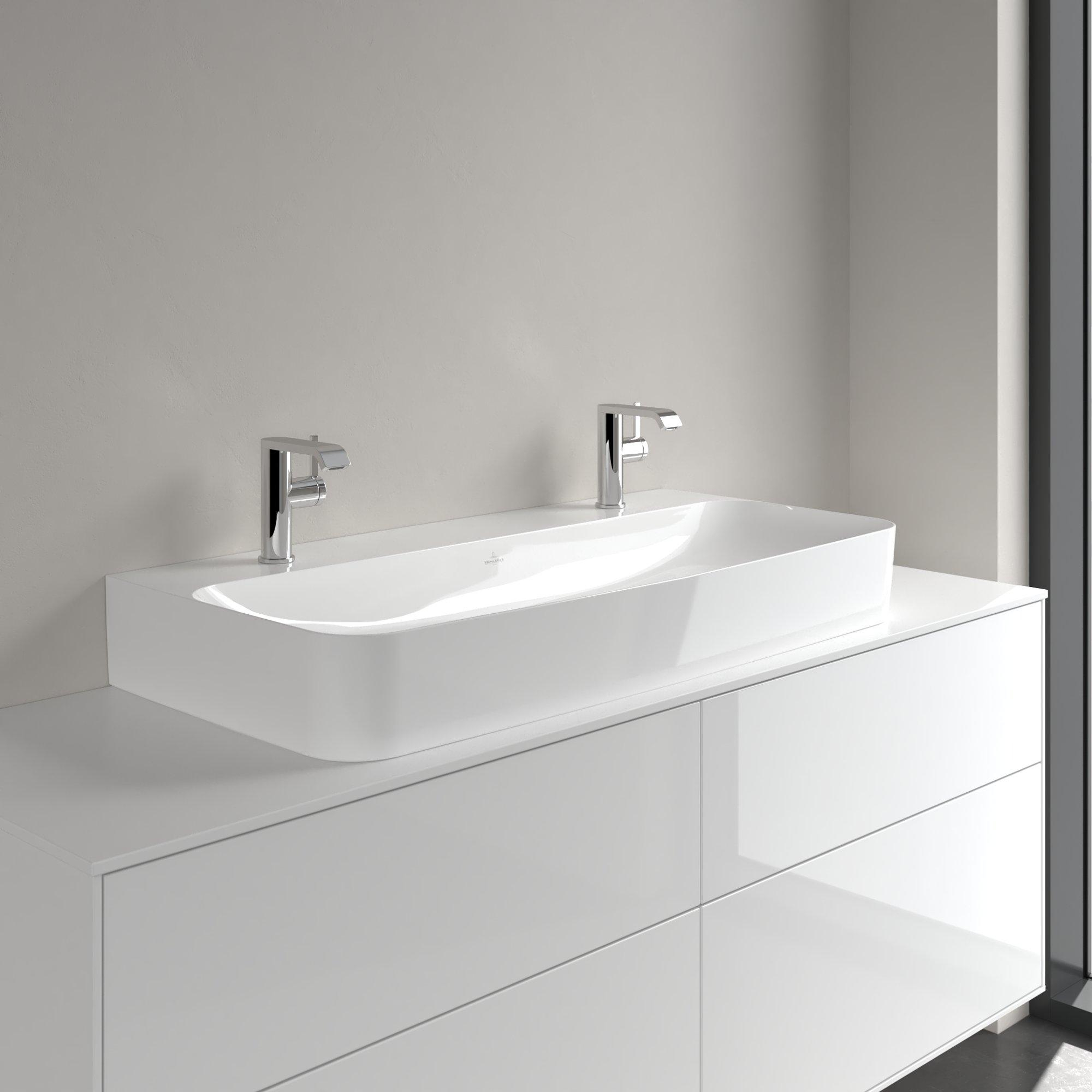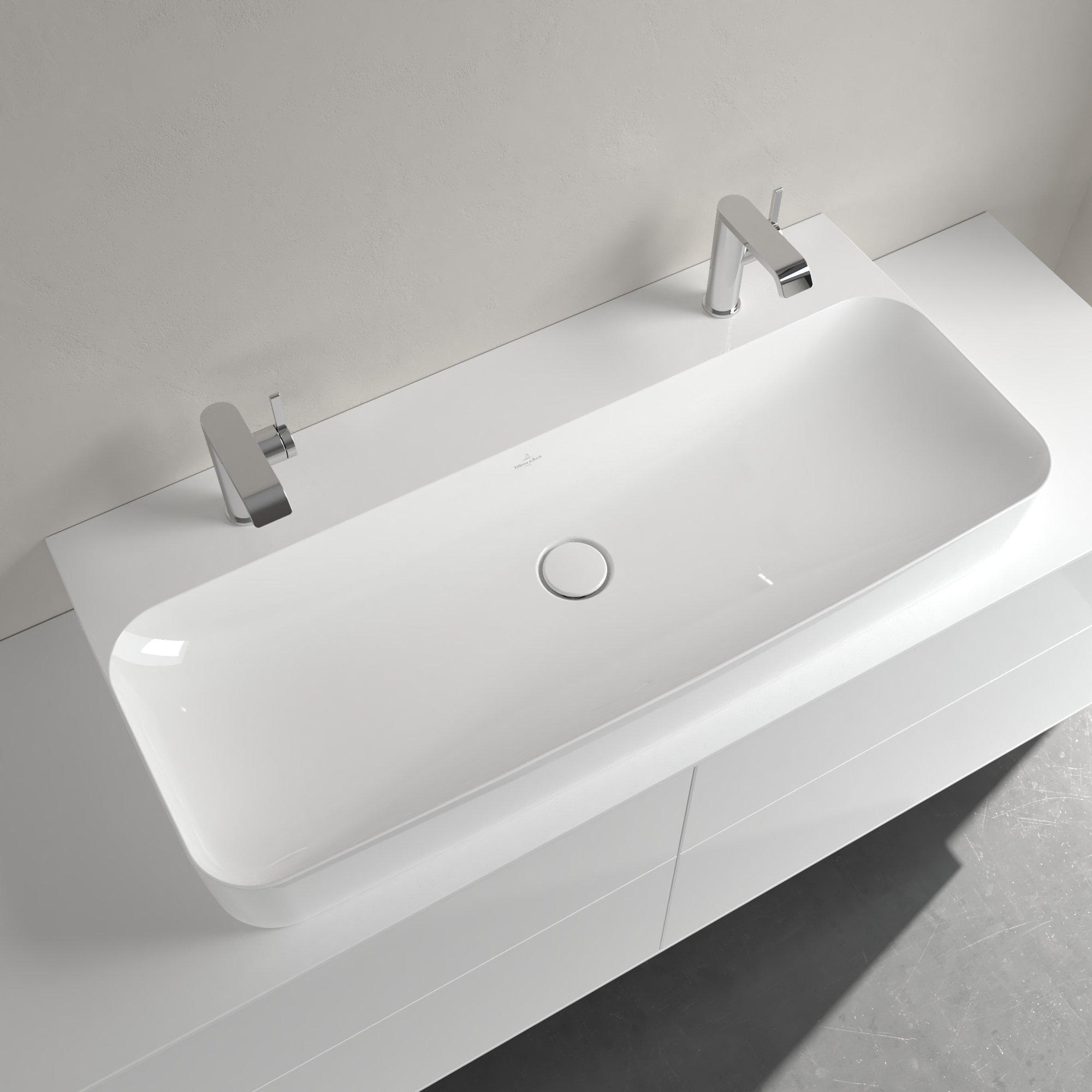 Villeroy & Boch Finion lavabo - dessous meulé avec 2 trous de robinet 100x47cm - ceramic+ sans trop-plein blanc