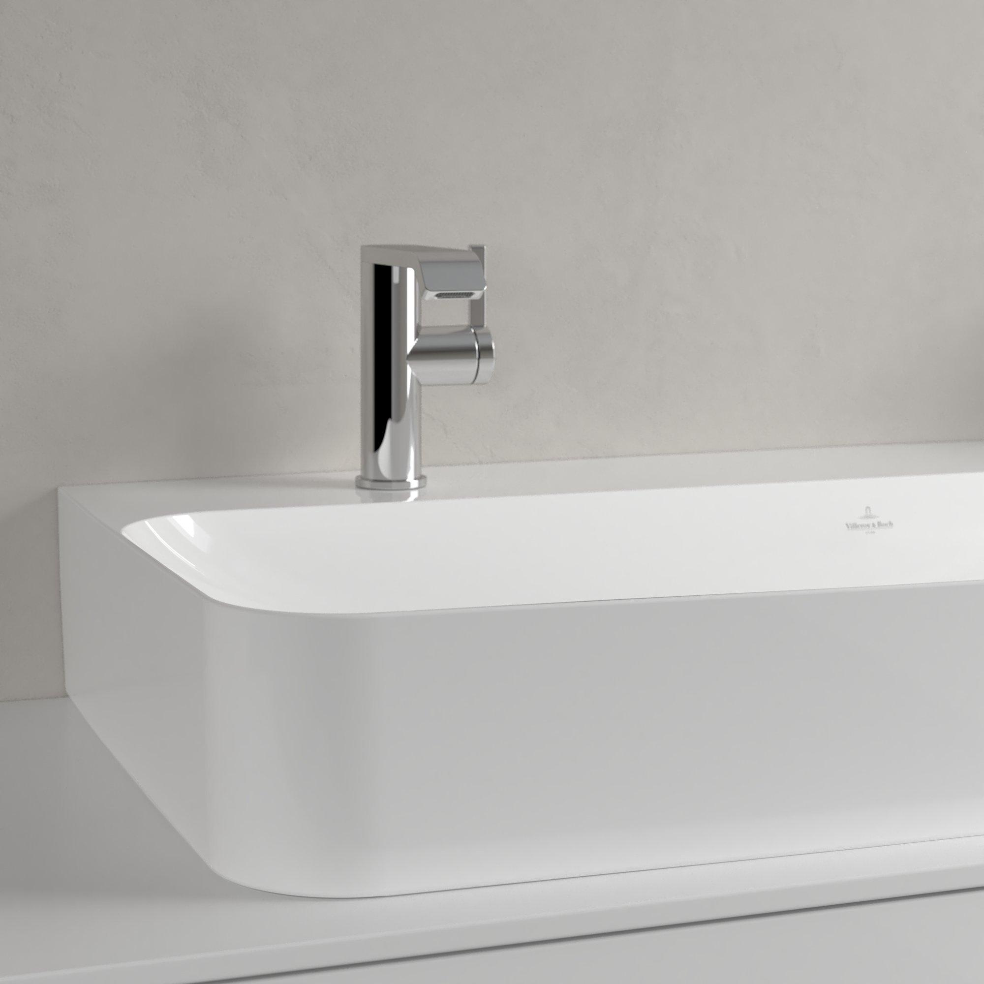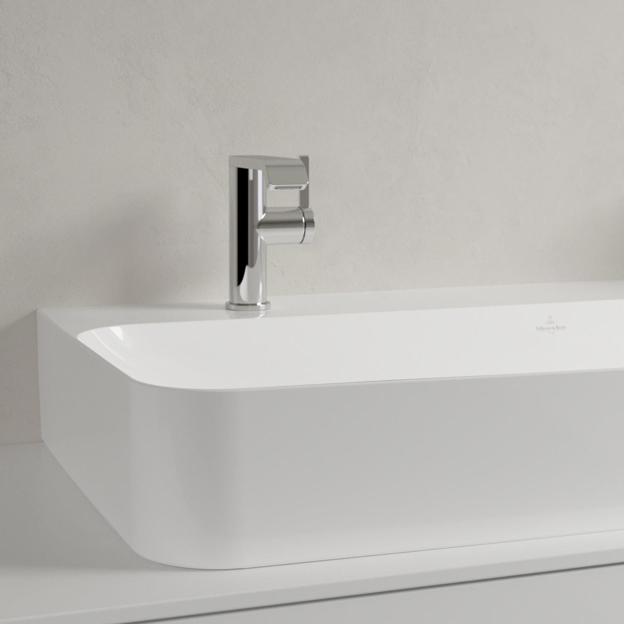 La céramique TitanCeram utilisée ne permet pas seulement d’obtenir des bords remarquablement fins et élégants, mais aussi une solidité exceptionnelle. Ce matériau a été spécialement développé pour des formes fines et précises qui restent néanmoins très robustes, idéal si vous voulez un lavabo design qui reste beau à long terme. Grâce à la finition CeramicPlus, la surface est anti-salissures : l’eau et les résidus de savon perlent facilement, ce qui limite l’adhérence du calcaire et de la saleté. Cela signifie moins de récurage, moins de produits de nettoyage agressifs et un lavabo qui reste plus longtemps frais et brillant. Surtout dans un foyer occupé ou en cas d’utilisation intensive, c’est un grand avantage, car vous maintenez un haut niveau d’hygiène avec un minimum d’efforts.