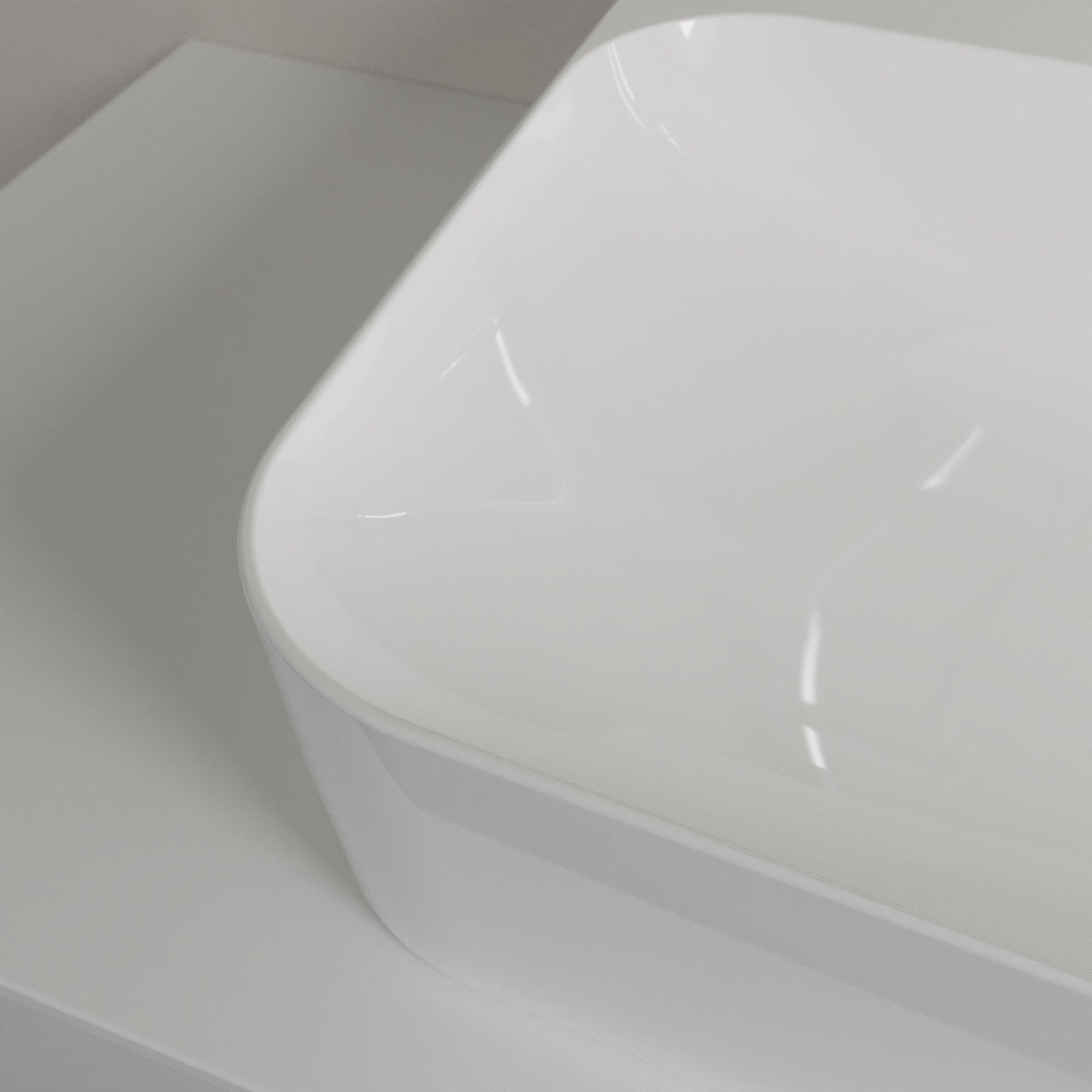 - Face inférieure meulée, parfaitement adaptée à l’installation sur un meuble de salle de bains.