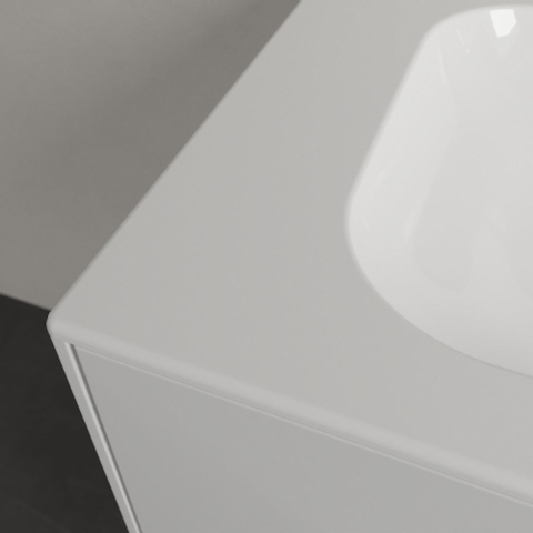 Outre son design soigné, la facilité d’entretien est un atout majeur. La céramique est dotée d’une surface antisalissure CeramicPlus, ce qui réduit considérablement l’adhérence de l’eau et de la saleté et vous permet souvent de nettoyer avec un simple chiffon doux et un détergent léger. Vous gagnez ainsi non seulement du temps, mais vous gardez également votre salle de bains fraîche et soignée plus longtemps. L’absence de trop-plein contribue à la pureté des lignes et réduit le nombre de rebords et d’angles où le calcaire et les résidus de savon peuvent s’accumuler. Grâce à la solidité du TitanCeram, la surface est durable, résistante aux rayures et parfaitement adaptée à un usage quotidien, pour que vous profitiez longtemps d’un lavabo qui conserve l’apparence du neuf.