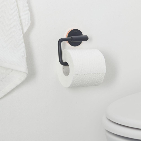La silhouette épurée et la finition noire mate confèrent immédiatement à vos toilettes une allure moderne et industrielle. Grâce aux bagues décoratives fournies en cuivre et en gris, vous pouvez facilement jouer avec les couleurs : choisissez par exemple le cuivre pour des tons chauds et le bois, ou le gris pour un look béton brut. Si vous préférez une ambiance plus sobre et intemporelle, montez le support sans bague pour qu’il reste entièrement noir. Cela rend cet accessoire particulièrement flexible à associer avec d’autres accessoires de salle de bains, des robinets et des profilés de douche noirs ou métalliques. Le côté ouvert apporte une impression de légèreté au mur et évite que l’ensemble paraisse massif, ce qui donne également une sensation d’espace dans un petit WC.