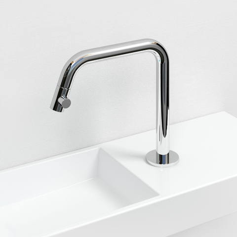 - Robinet de lave-mains élancé, parfaitement adapté aux petits WC et aux lave-mains compacts