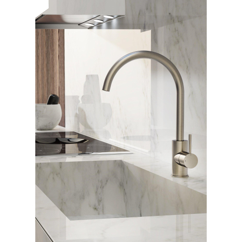 Le design épuré et minimaliste de ce robinet s’intègre parfaitement dans une cuisine contemporaine. La finition en nickel brossé offre une brillance mate et subtile qui paraît à la fois moderne et intemporelle. Cela fait de ce robinet un choix polyvalent qui s’accorde aisément avec différents styles d’intérieur. Le bec en U orientable ajoute une dimension supplémentaire de confort d’utilisation, vous permettant de passer facilement d’une tâche à l’autre sans faire de compromis sur le style ou le confort.