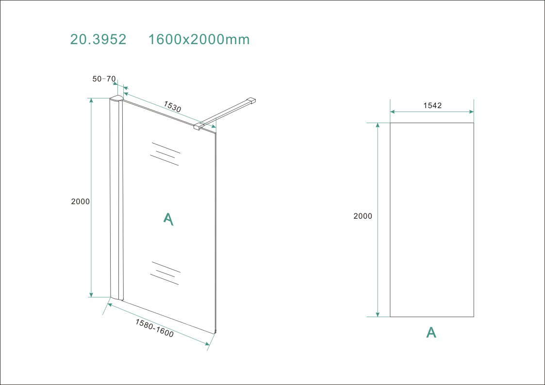 Wiesbaden Comfort douche à l'italienne 1600 x 2000 x 8 mm nano verre clair/chrome