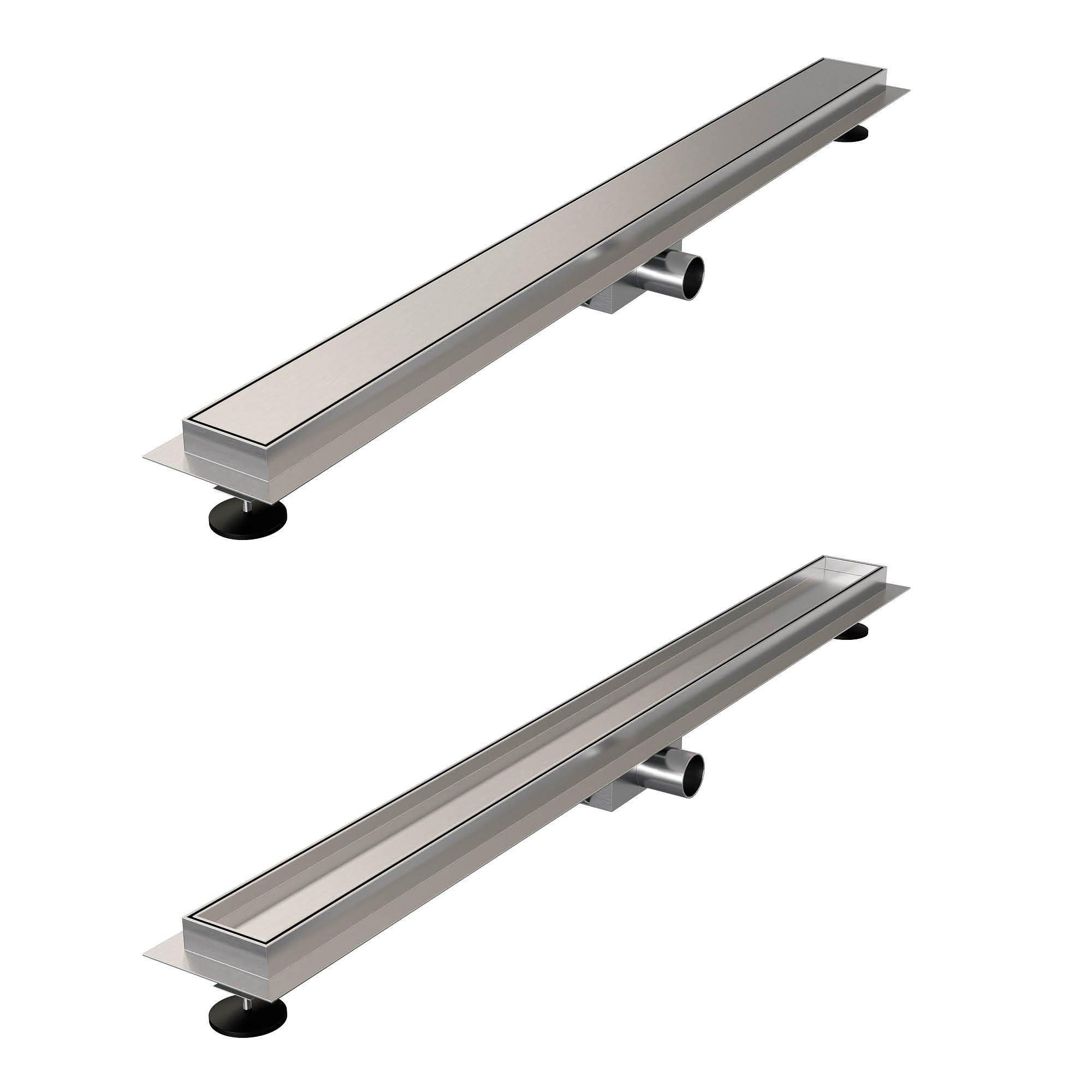 Brauer Caniveau de douche - 100x7x6.7cm - flasque de sol peu profonde - sortie latérale - grille de carrelage réversible - inox