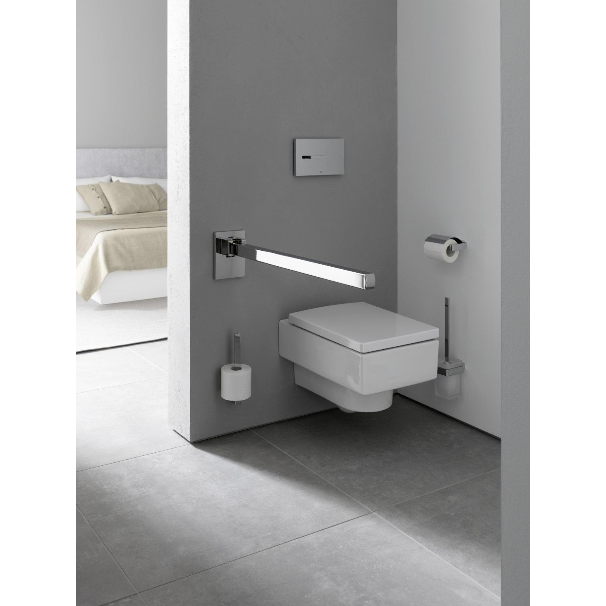 Le design minimaliste avec clapet plat et lignes droites confère à vos toilettes une apparence calme et ordonnée. Le rouleau est en grande partie dissimulé, de sorte que l’accent est mis sur la finition soignée plutôt que sur le papier toilette lui-même. Cela en fait un accessoire idéal pour les salles de bains modernes et les WC design où vous souhaitez appliquer un style uniforme. Les dimensions compactes d’environ 13 x 13,8 x 4,1 cm permettent au support de trouver également parfaitement sa place sur des parois plus étroites ou à côté d’une petite vasque. Combinez-le avec d’autres accessoires en chrome pour un bel ensemble, comme un crochet porte-serviette, un set de balai WC ou un porte-rouleau de réserve.