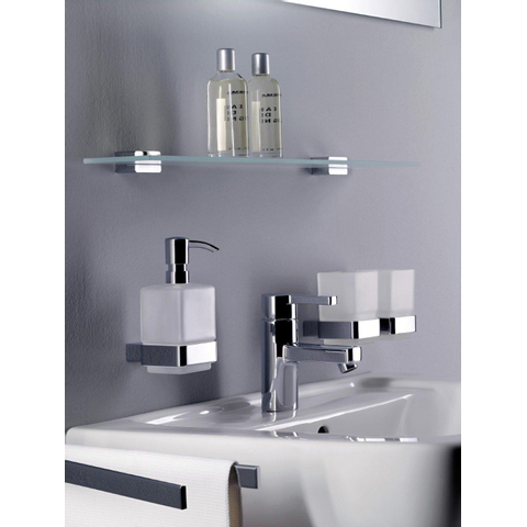 La finition chromée haute brillance confère à cet accessoire une apparence fraîche et luxueuse, qui s'accorde parfaitement avec un style de salle de bains moderne ou minimaliste. La rosace plate et rectangulaire et le profil élancé créent une ligne murale sobre et graphique. Grâce à la fixation dissimulée, vous ne voyez ni vis ni chevilles, ce qui donne à l'ensemble un aspect net et fini. Combinez ce produit avec d'autres accessoires de salle de bains chromés pour un ensemble harmonieux, ou utilisez-le comme accent discret sur un mur carrelé ou en pierre naturelle sobre.