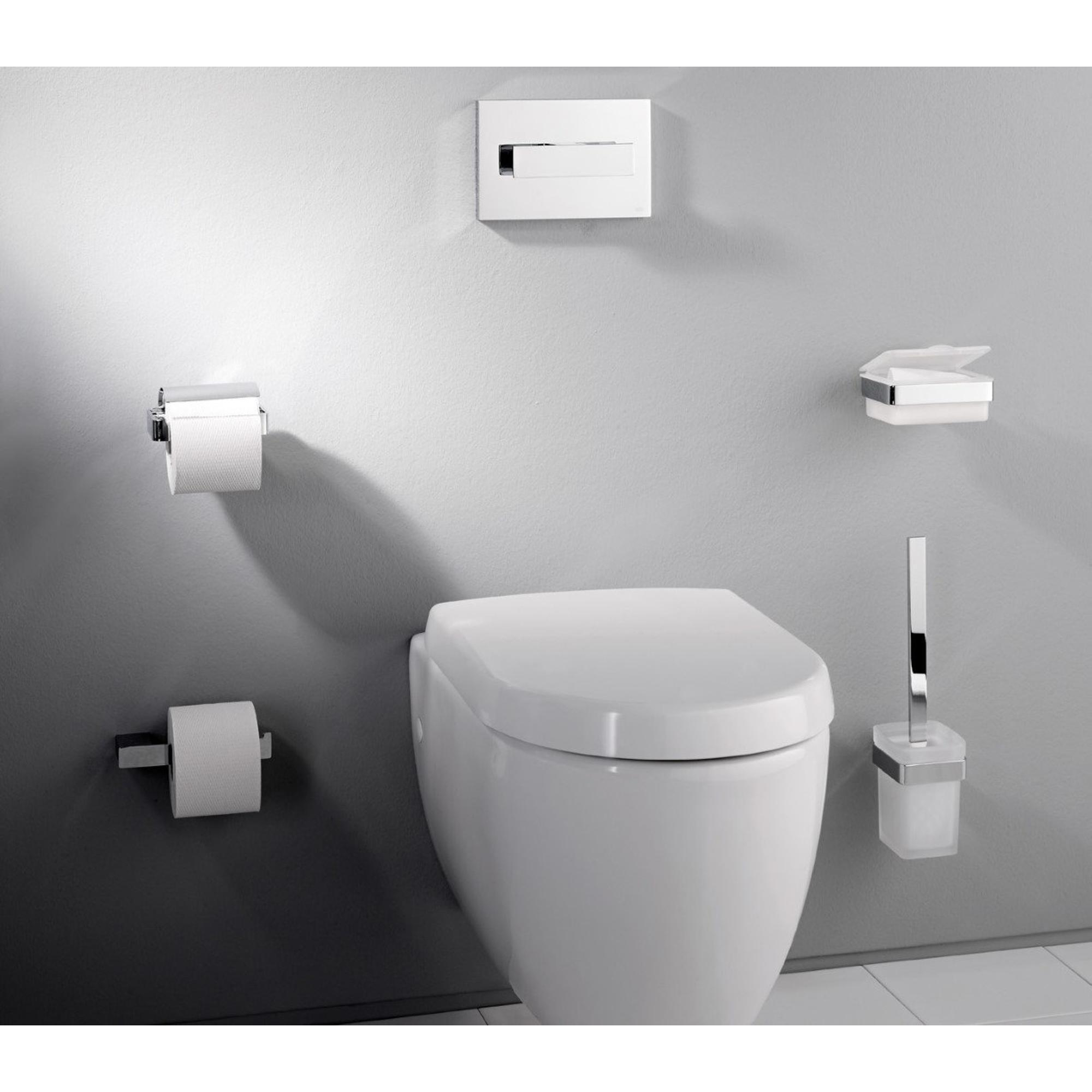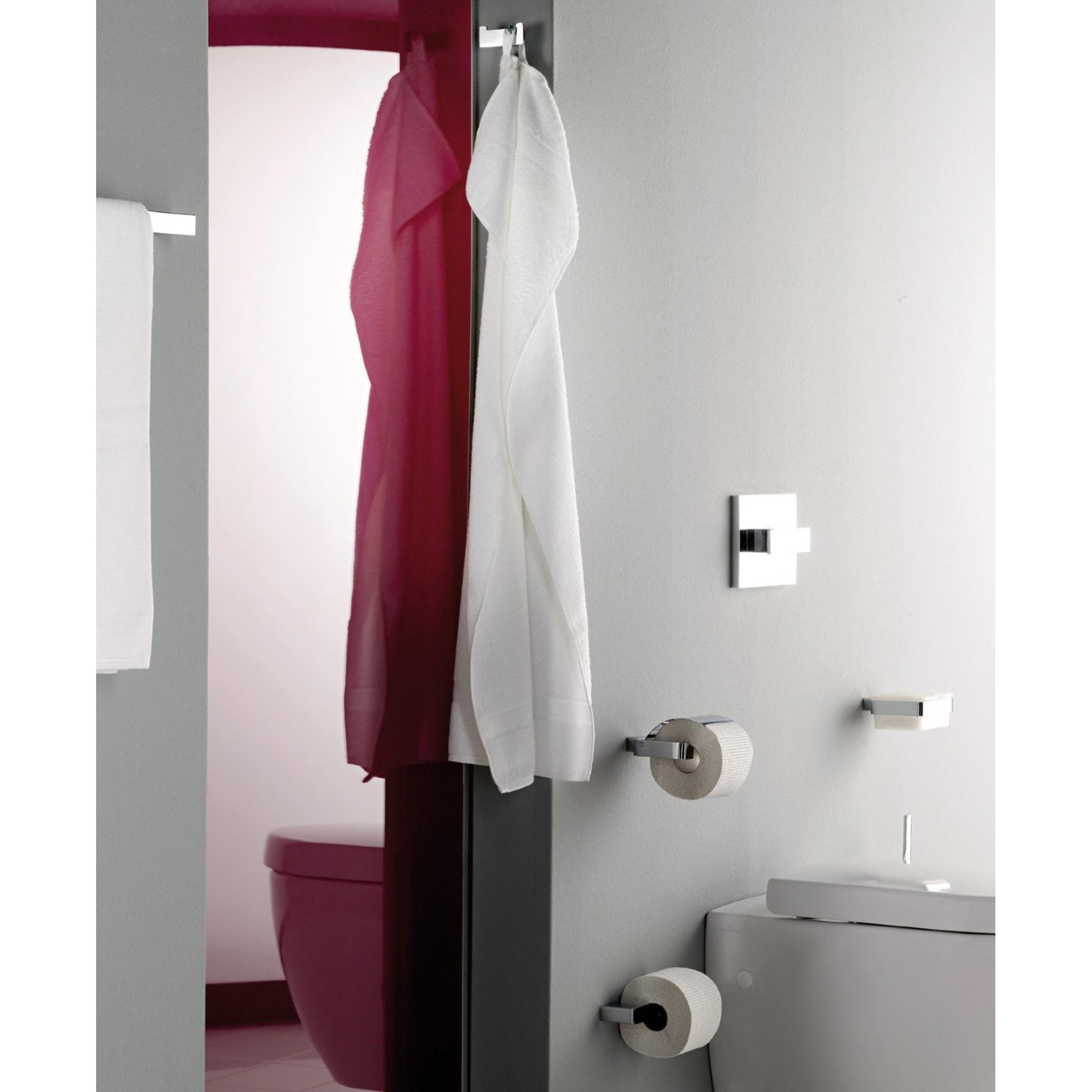Avec ses lignes nettes et son profil plat, ce porte-rouleau s’intègre parfaitement dans une salle de bains moderne ou au style minimaliste intemporel. La forme horizontale rend le rouleau de réserve bien visible tout en restant soigneusement rangé, de sorte que vos toilettes aient toujours un aspect soigné. La rosace de recouvrement rectangulaire assure une finition élégante contre le mur, sans vis apparentes. Ainsi, la pièce paraît calme et haut de gamme, ce qui fait immédiatement la différence, surtout dans les petits espaces toilettes. Combinez cet accessoire avec d’autres accessoires de salle de bains chromés du même style et vous créez facilement un ensemble harmonieux.