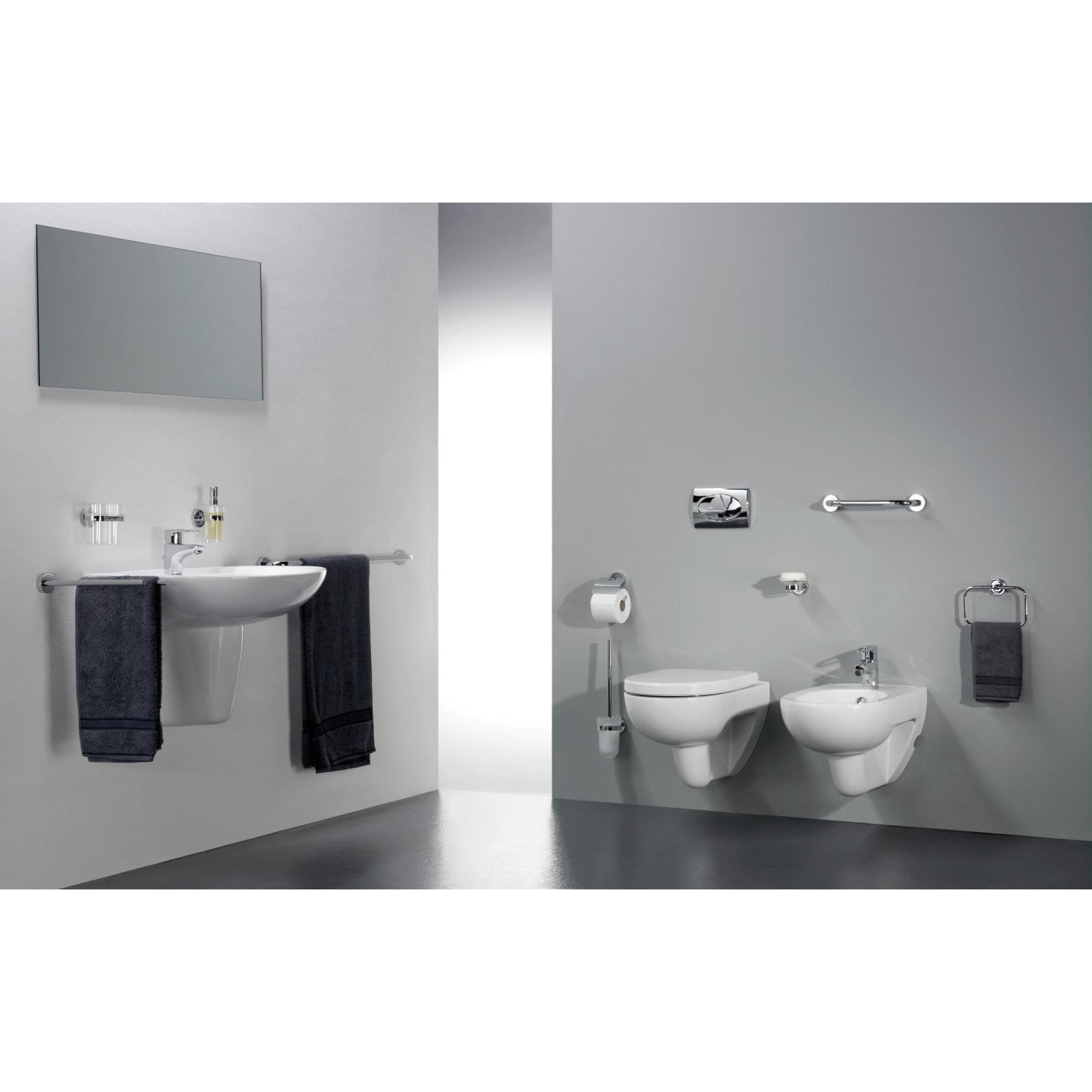 La combinaison du tube rond et élancé et de la finition chromée brillante crée un aspect calme et minimaliste. De ce fait, ce porte-serviettes s’intègre sans effort aussi bien dans les salles de bains modernes que dans les salles de bains intemporelles, et se marie parfaitement avec les robinets et ensembles de douche brillants. Grâce à sa longueur généreuse de 60 cm, vos serviettes paraissent toujours nettes et bien alignées, ce qui contribue immédiatement à une impression ordonnée. Montez-le à côté du lavabo ou près de la douche, et vous remarquerez à quel point il s’intègre naturellement dans les lignes de votre salle de bains.