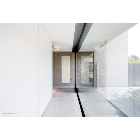 - Radiateur design vertical élégant avec jeu de lignes épurées pour salles de bains et pièces de vie modernes et intemporelles.