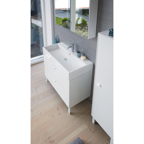 Ce lavabo-meuble est conçu pour être placé sur un meuble sous-vasque, mais peut également être monté de façon suspendue. Cela vous laisse beaucoup de liberté dans l’aménagement de votre salle de bains. Sur un meuble de salle de bains épuré, vous créez un espace de rangement supplémentaire pour les serviettes et les articles de toilette, tandis qu’un montage suspendu crée au contraire un effet spacieux et aéré, idéal pour les salles de bains plus petites. Le trou de robinet unique convient à la plupart des mitigeurs de lavabo courants, ce qui vous permet de choisir facilement un robinet adapté à votre style, du chrome épuré au noir mat. Grâce au trop-plein intégré, l’eau reste à l’intérieur de la cuve, ce qui procure un sentiment de sécurité à l’usage quotidien.