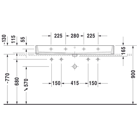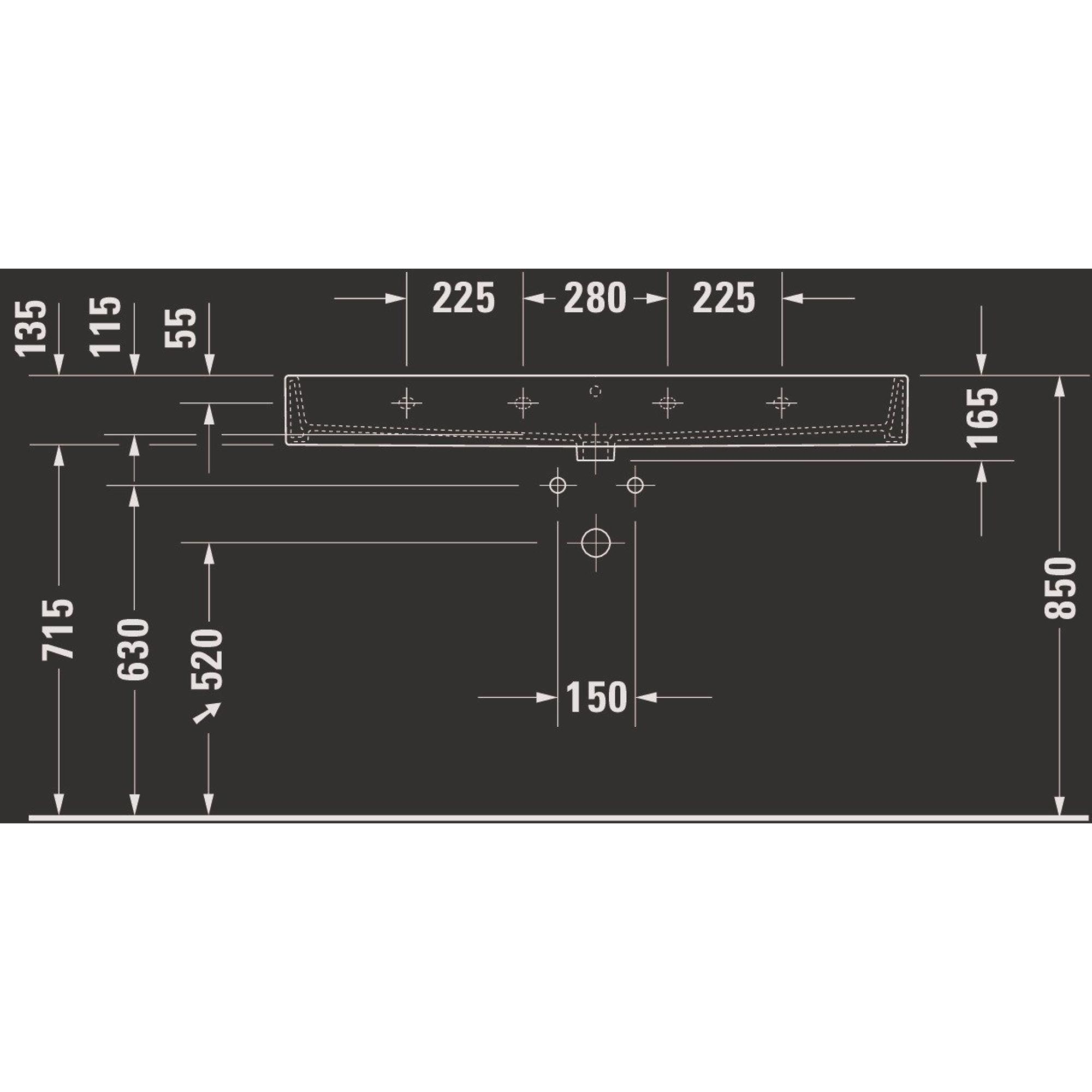 Avec une largeur de 120 cm et une profondeur de 47 cm, vous disposez de plus qu'assez d'espace pour utiliser confortablement le lavabo à deux, côte à côte. Les deux trous de robinetterie vous permettent d'installer deux robinets distincts, afin de ne pas vous gêner pendant l'heure de pointe du matin. La forme rectangulaire offre une grande surface de lavage et un plateau pratique pour poser le savon, les brosses à dents et autres accessoires du quotidien. Ainsi, votre salle de bains reste claire et bien rangée, même lorsque plusieurs membres de la famille utilisent intensivement le lavabo. Le trop-plein intégré empêche en outre que l'eau ne coule subrepticement par-dessus le bord, ce qui procure un sentiment de sécurité dans une famille avec enfants.