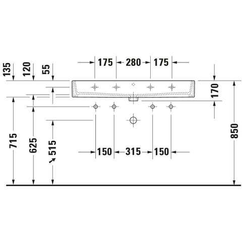 - Deux trous de robinet à gauche et à droite, parfaits pour deux robinets de lavabo séparés.