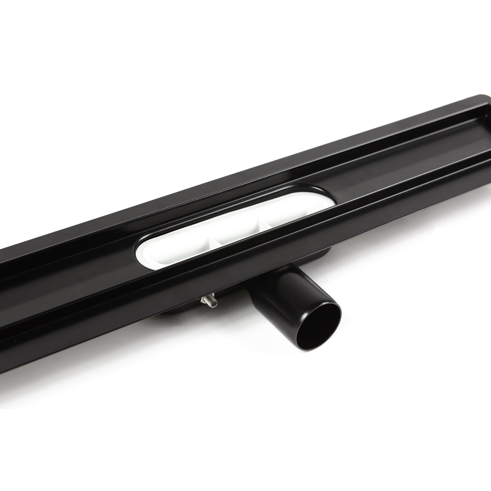 Ce caniveau de douche épuré est un excellent choix si vous souhaitez une douche à l’italienne avec un sol plat minimaliste et une évacuation d’eau fiable. Grâce à la hauteur d’encastrement limitée, vous pouvez souvent utiliser ce modèle également lors de rénovations ou dans des situations où la hauteur de réservation est limitée. La combinaison de l’acier inoxydable et d’une finition noir signal s’intègre sans effort dans les salles de bains modernes, industrielles ou style hôtel de luxe. Avec la forme allongée le long du mur ou au centre de la douche, vous créez un effet spacieux et une entrée de douche sans seuil, idéale pour le confort quotidien et un habitat prêt pour l’avenir.