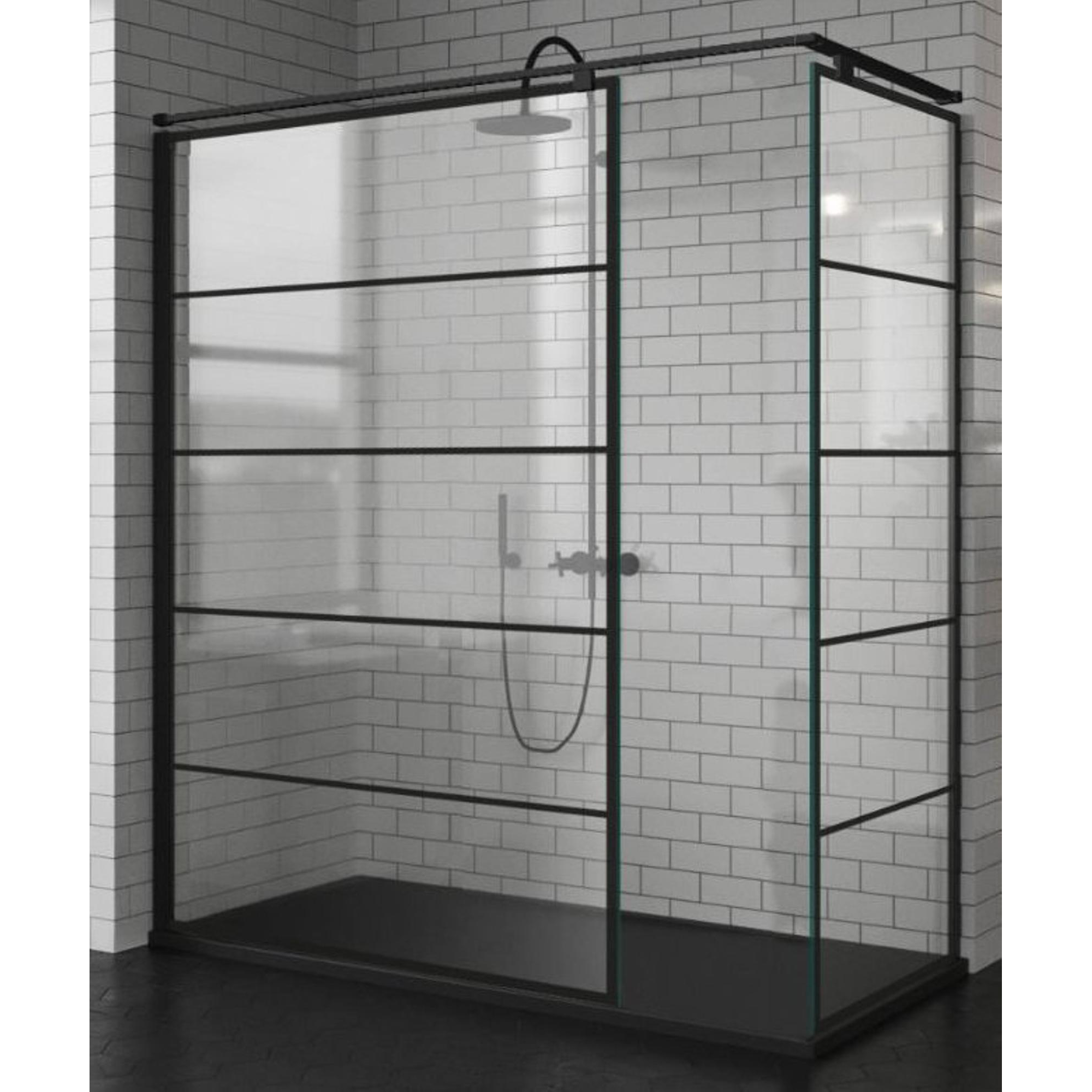 Novellini Kuadra douche à l'italienne 80 ver.77-80cmmotif rayures noir mat noir