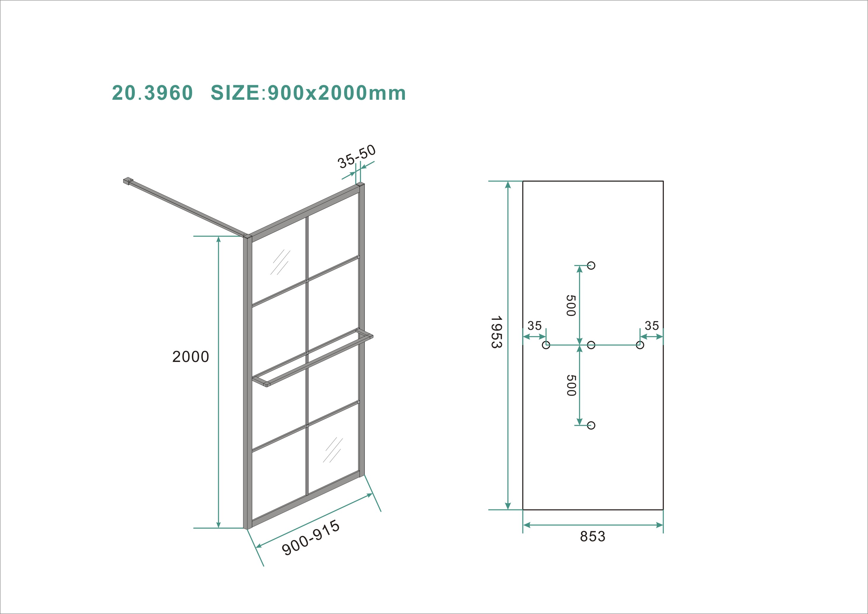 - Dimensions : 900 x 2000 x 10 mm – adapté à différents formats de salle de bains