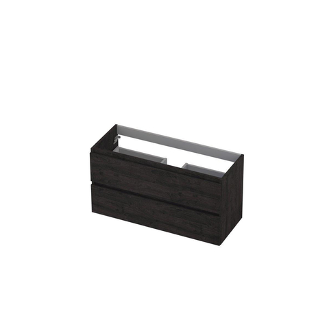 Ink meuble sous lavabo 100x52x40cm 2 tiroirs tourniquet sans poignée décor bois chêne anthracite