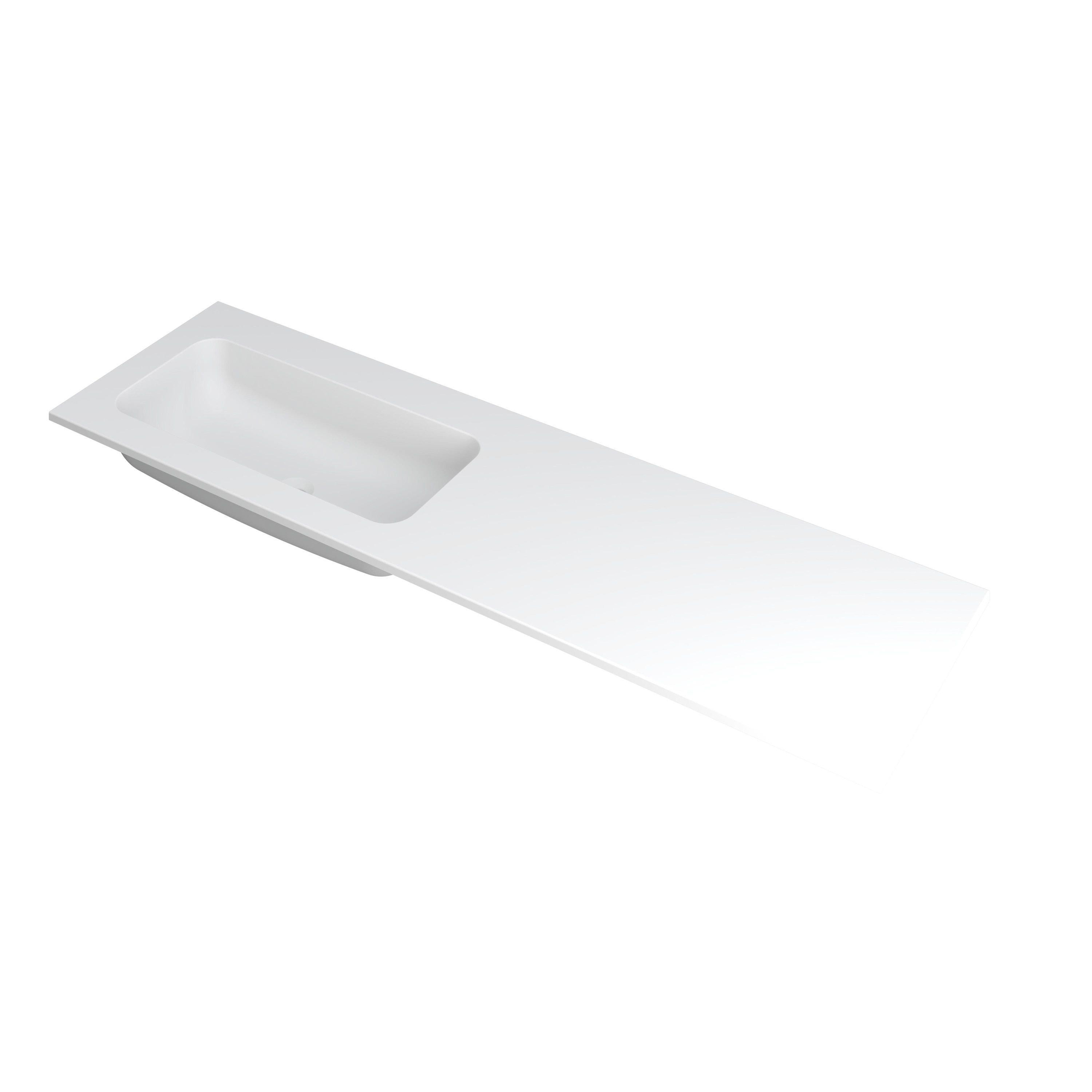 INK Faktor Lavabo - 160x45x1.5cm - 1 vasque à gauche - 0 trous de robinetterie - polystone blanc mat