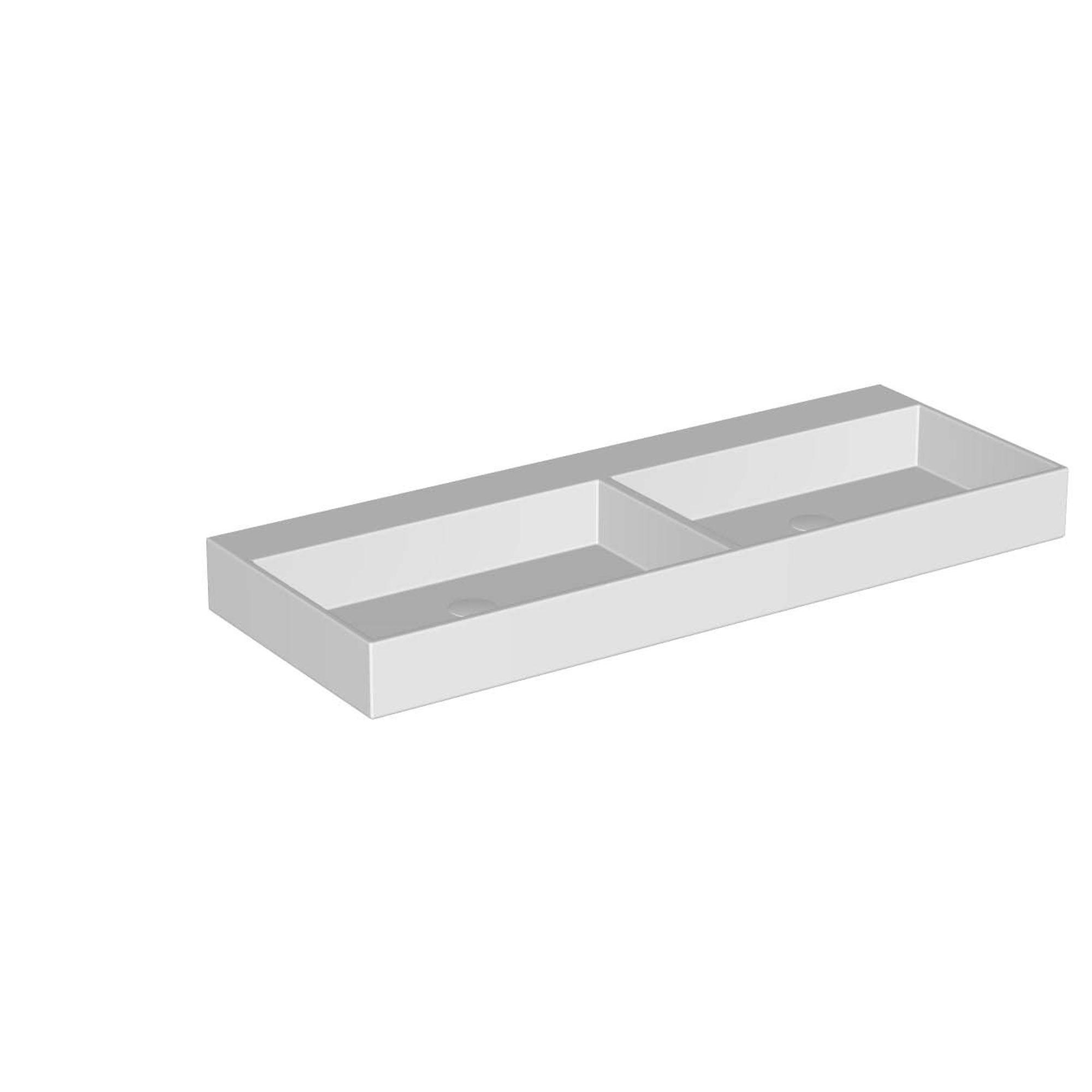 Double INK United lavabo - 120x45x11cm - 2 vasques - 0 trous de robinet - porcelaine blanc mat fonctionnel