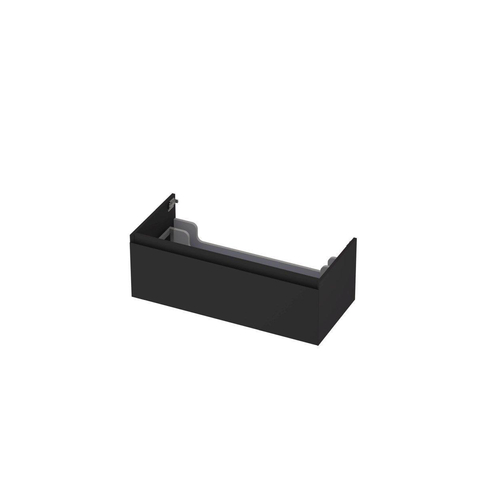 INK Meuble sous-lavabo - 100x45x35cm - 1 tiroir - sans poignées - finition à 45 degrés tout autour - MDF laqué noir mat