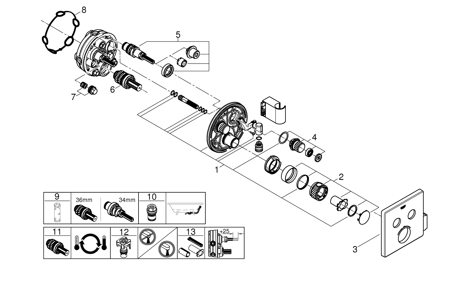- Sécurité assurée par une limite de température préréglée de 38 °C (GROHE SafeStop)