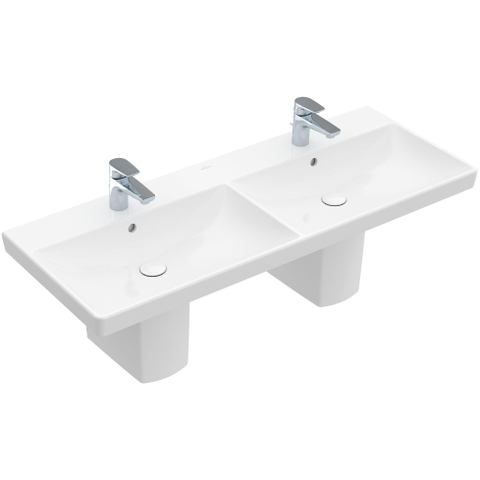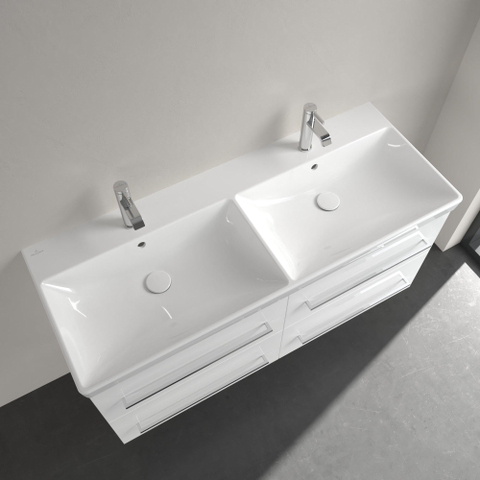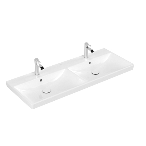 Villeroy & Boch Avento double lavabo pour meuble - 120x47cm - 2 trous de robinet avec trop-plein blanc Ceramic+ blanc