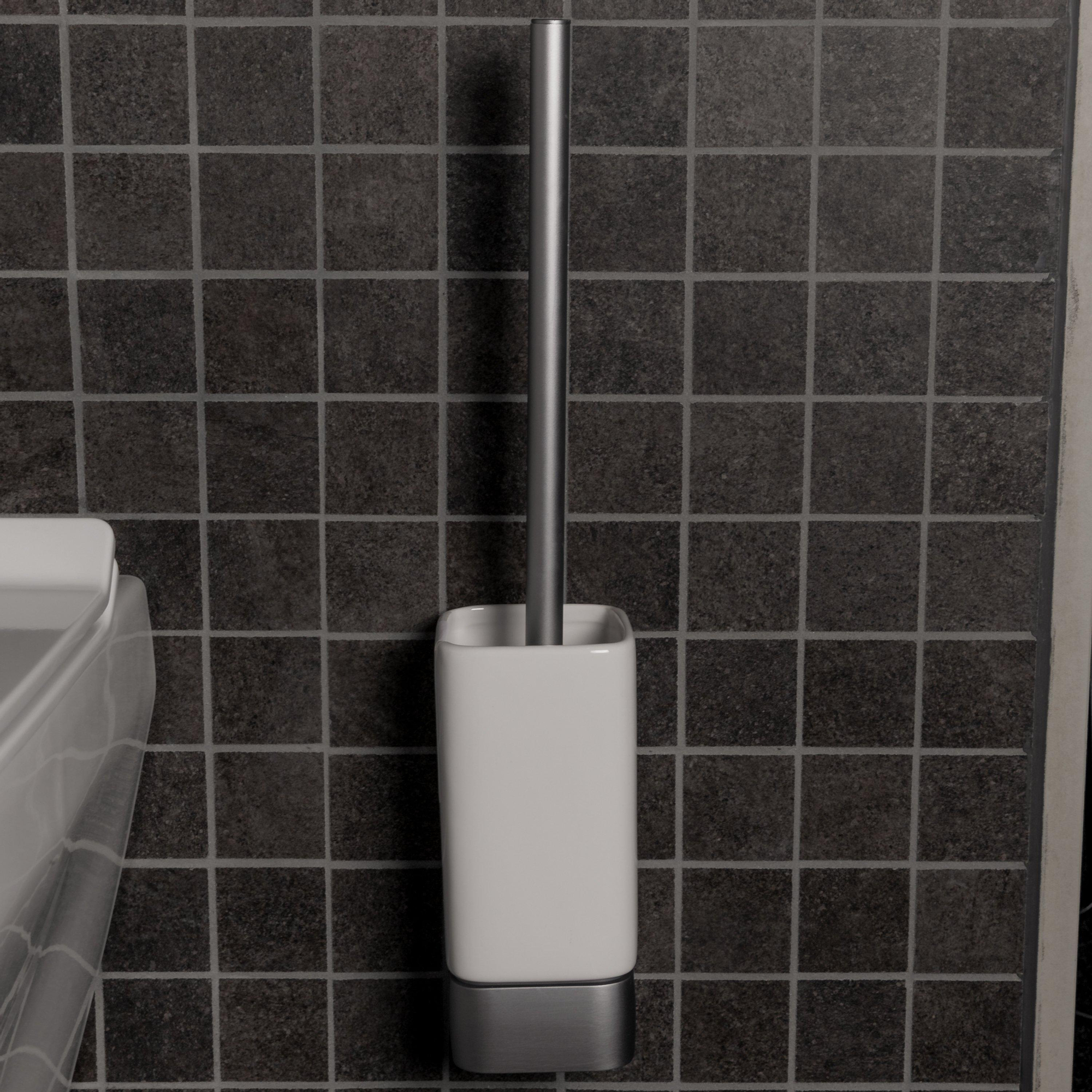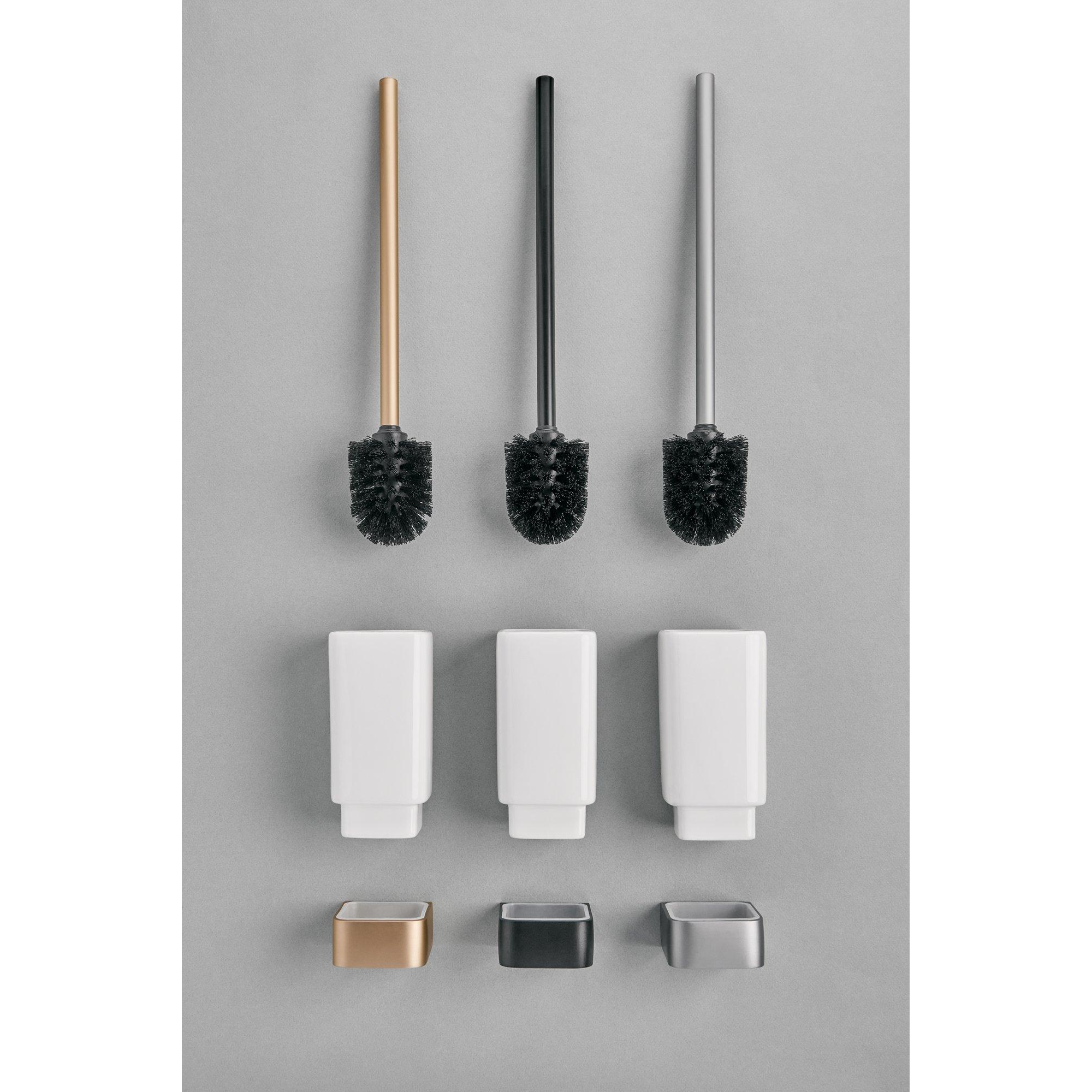- Garniture de balai de WC moderne en gris mat avec aspect brossé pour une apparence élégante et apaisante.