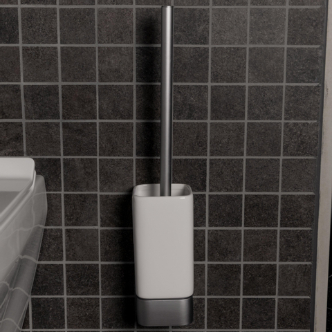 La combinaison de l'aluminium gris mat brossé avec la forme épurée, en grande partie carrée, donne immédiatement à vos toilettes un aspect contemporain. Le porte-balai est fin (environ 7,4 cm de large et 7,8 cm de profondeur) et suffisamment haut pour garder la brosse discrètement hors de vue. La teinte grise neutre se marie facilement avec la céramique blanche, les carreaux effet béton et les accents noirs ou en inox. Vous créez ainsi une ligne cohérente et apaisante dans votre espace sanitaire, surtout lorsque vous combinez cet accessoire avec d'autres éléments de la même série. Le modèle ouvert avec insert visible offre un aspect léger et raffiné, sans devenir massif ou encombrant dans un petit espace.