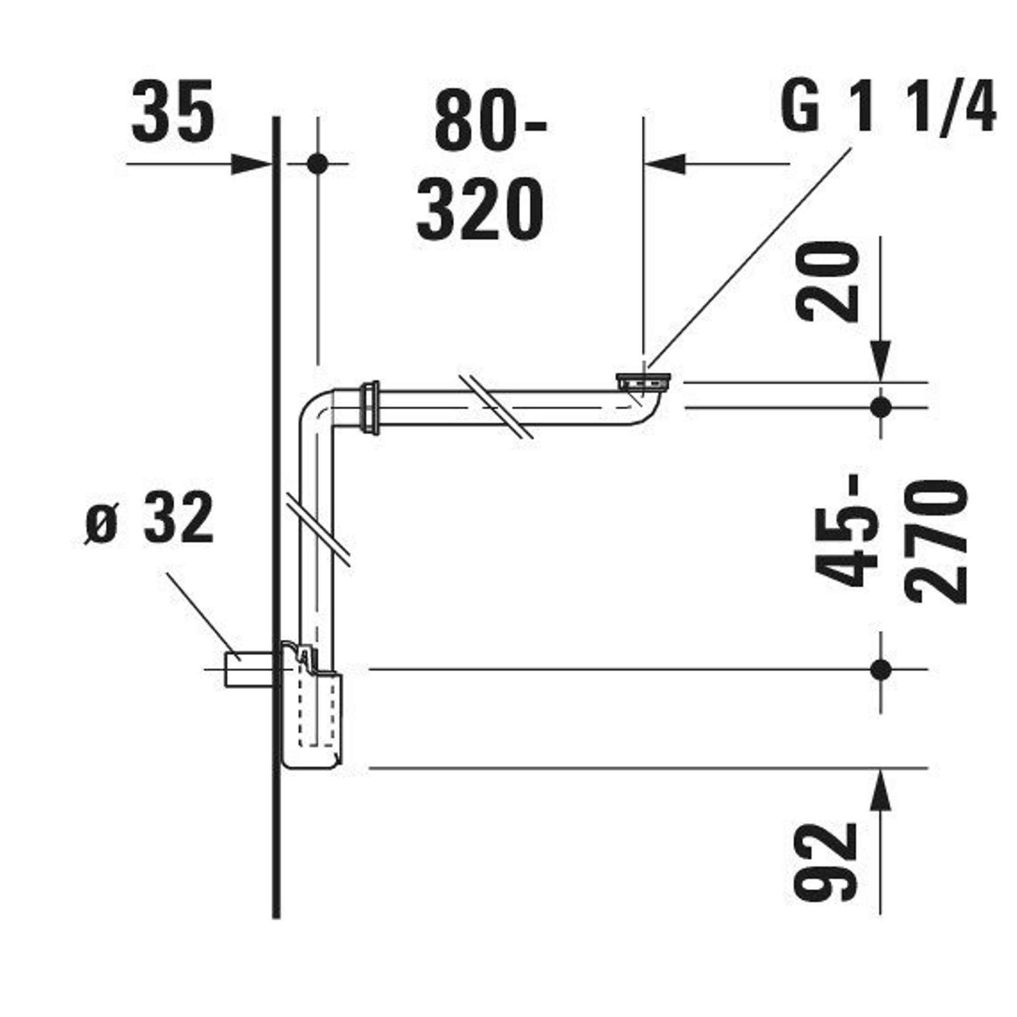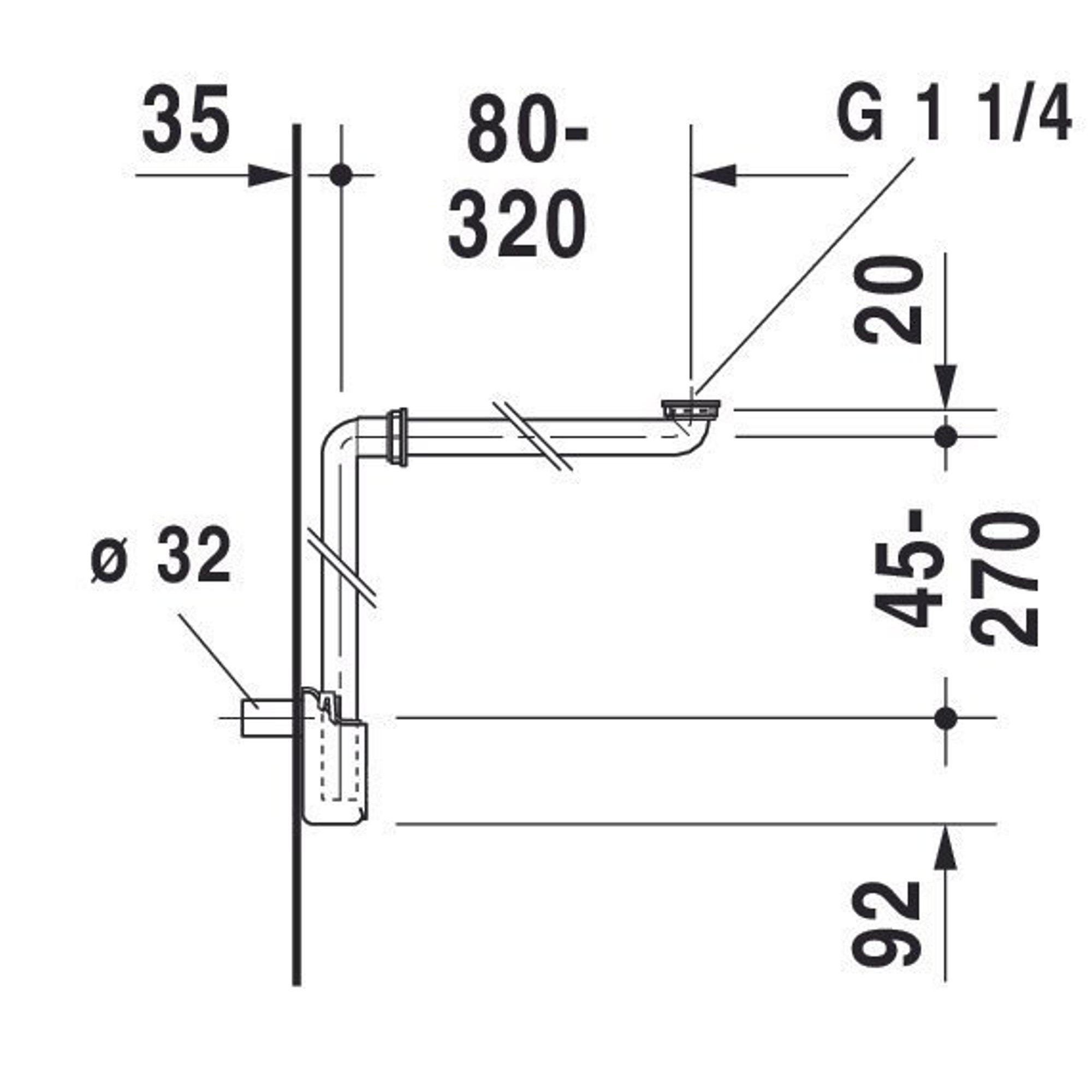 Ce siphon est équipé d’un raccord standard G 1 1/4 avec un diamètre d’évacuation de 32 mm, ce qui le rend adapté à la plupart des lavabos et solutions de meubles courants. Le choix en est donc simplifié : vous n’avez pas à chercher indéfiniment une combinaison spécifique, mais pouvez utiliser ce siphon sans problème dans la plupart des situations. Le tuyau mural fourni assure un raccordement propre au tuyau d’évacuation dans le mur. Grâce à sa conception claire, le montage est facile à suivre, même si vous ne faites pas de l’installation votre travail quotidien. Vous gagnez ainsi du temps lors de l’installation et réduisez le risque d’erreurs ou de fuites.