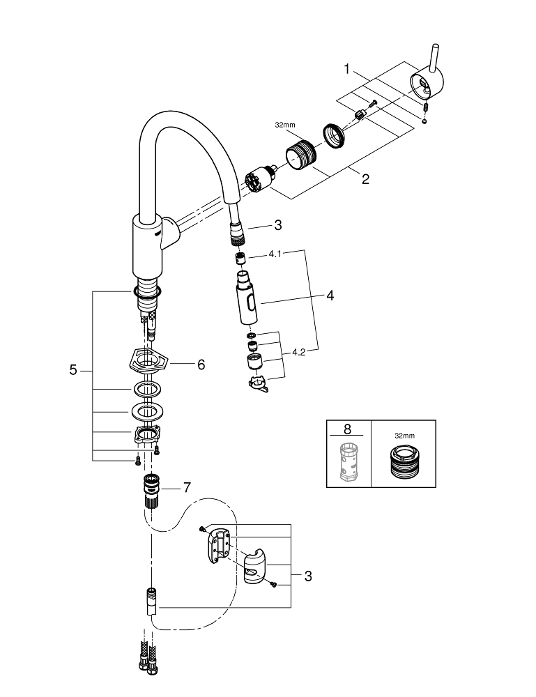 GROHE Concetto Robinet de cuisine avec mousseur extractible DualSpray Chrome