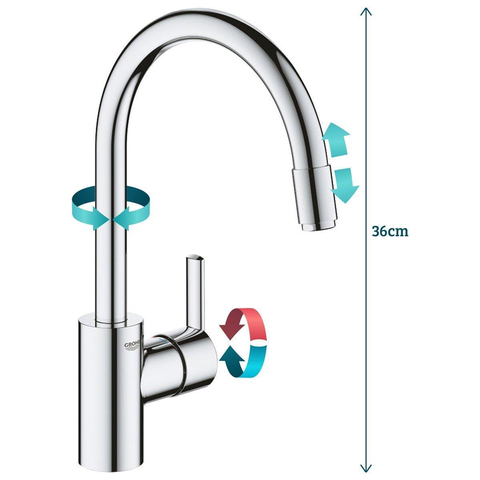 - Finition chromée GROHE Long-Life résistante aux rayures et repoussant la saleté