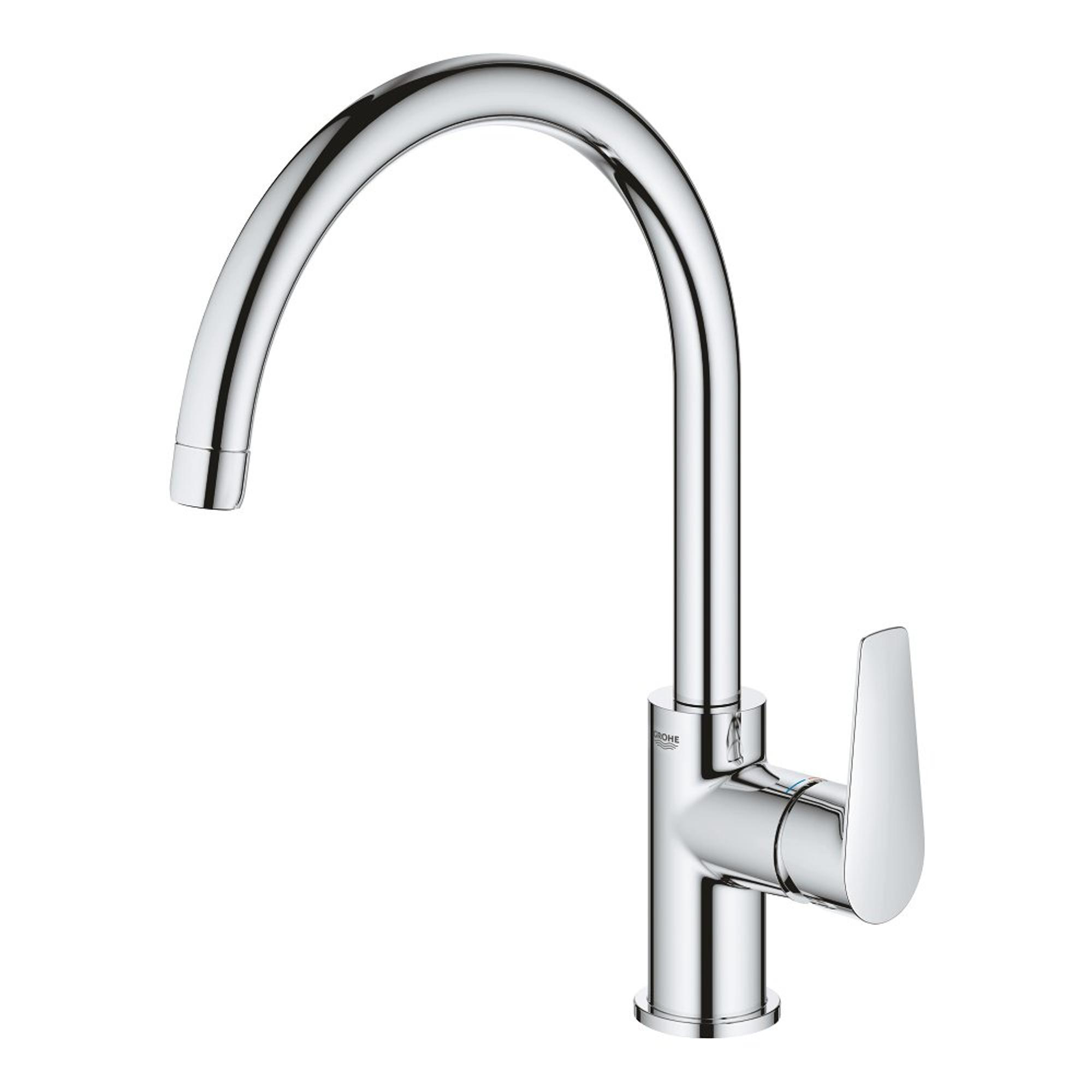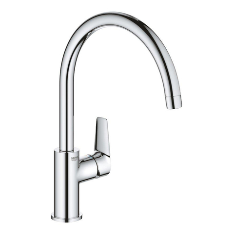 Le mitigeur de cuisine GROHE BauEdge à levier unique offre un confort de commande et d’utilisation total grâce à l’angle de rotation de 360˚ et au bec haut pour un prix abordable