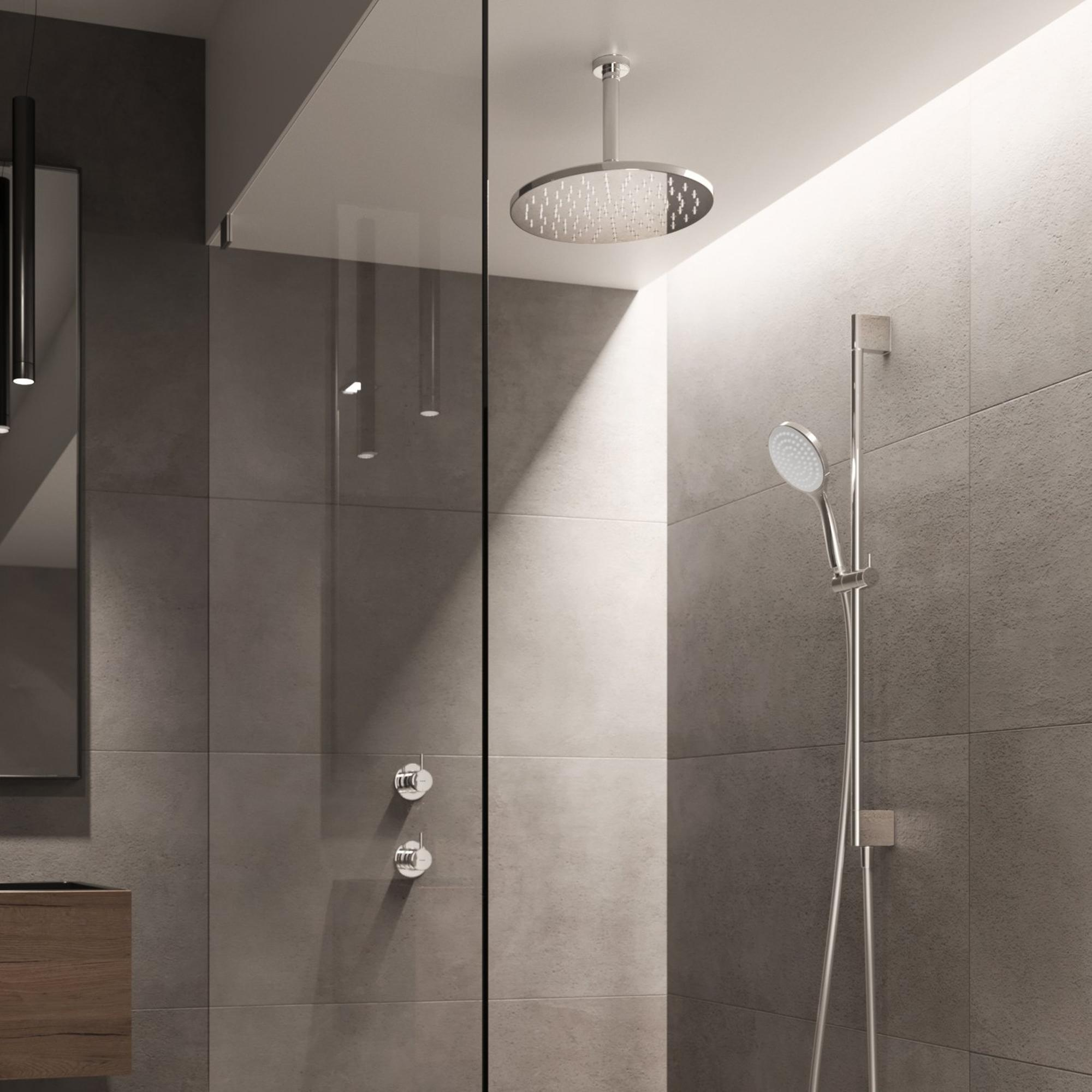 Le mitigeur de douche encastré avec 2 fonctions et un inverseur pratique permet de passer facilement et en douceur de la douche de tête à la douchette à main barre. Le bras mural de 35 cm positionne parfaitement la douche de tête, tandis que la douchette à main offre une flexibilité supplémentaire, par exemple pour rincer les zones difficiles d’accès ou pour nettoyer la douche. Grâce à son ergonomie soignée et à sa commande intuitive, la douche devient une expérience simple et agréable, entièrement adaptée à vos préférences personnelles.