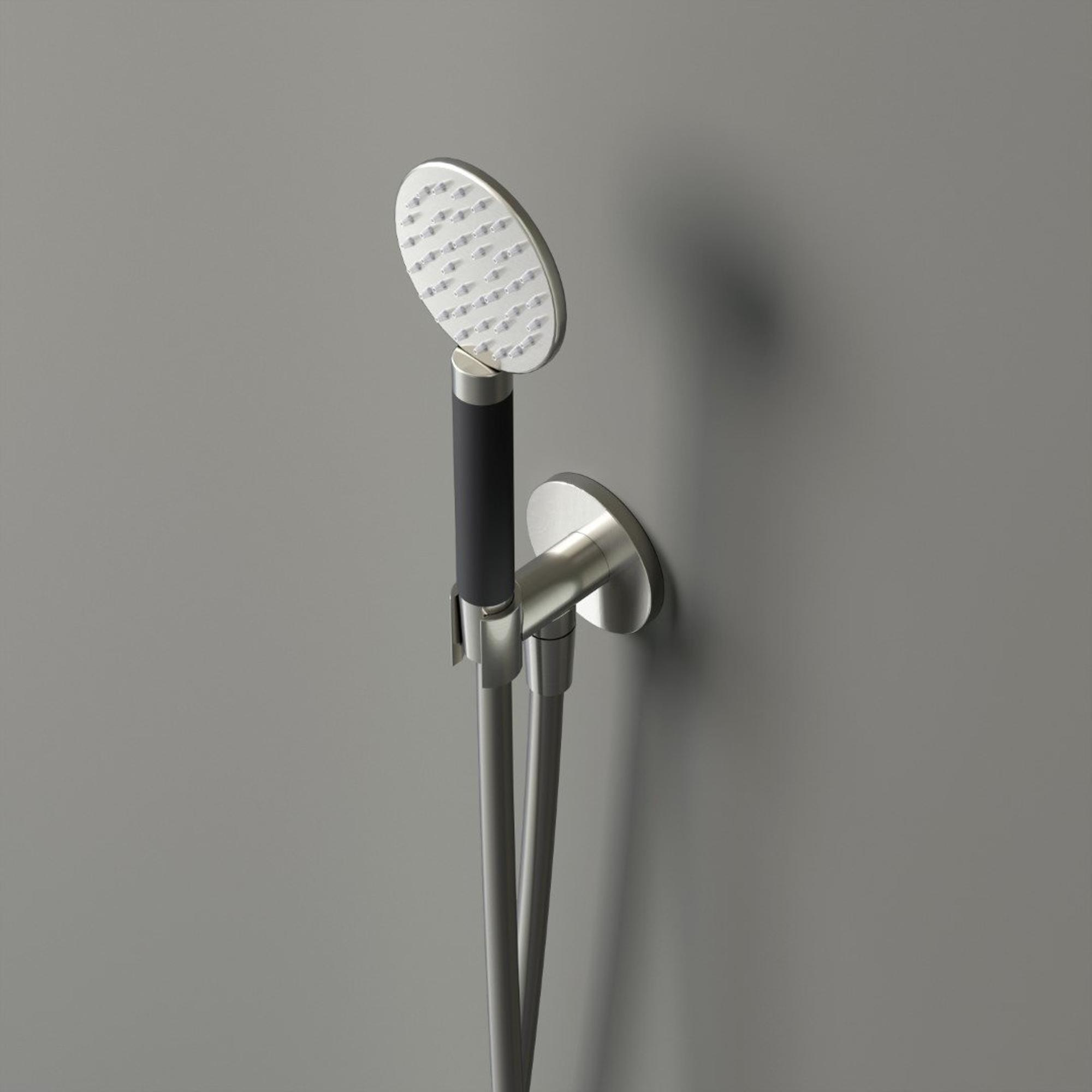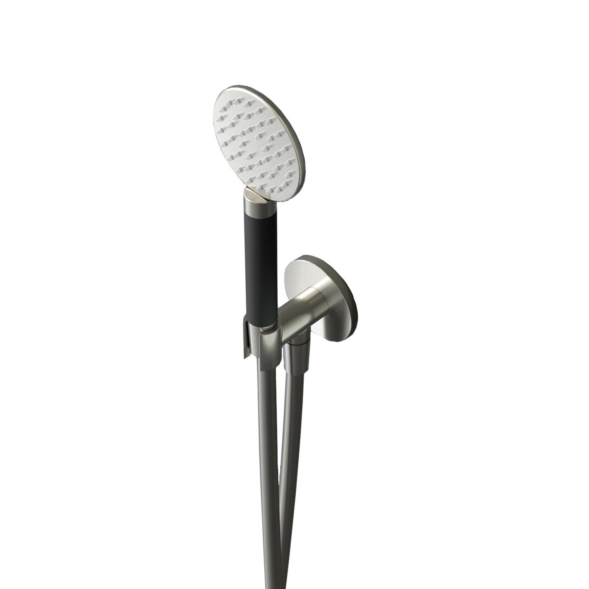 Hotbath Cobber M442 douchette à main ronde avec support mural et sortie et flexible de douche 150cm nickel brossé